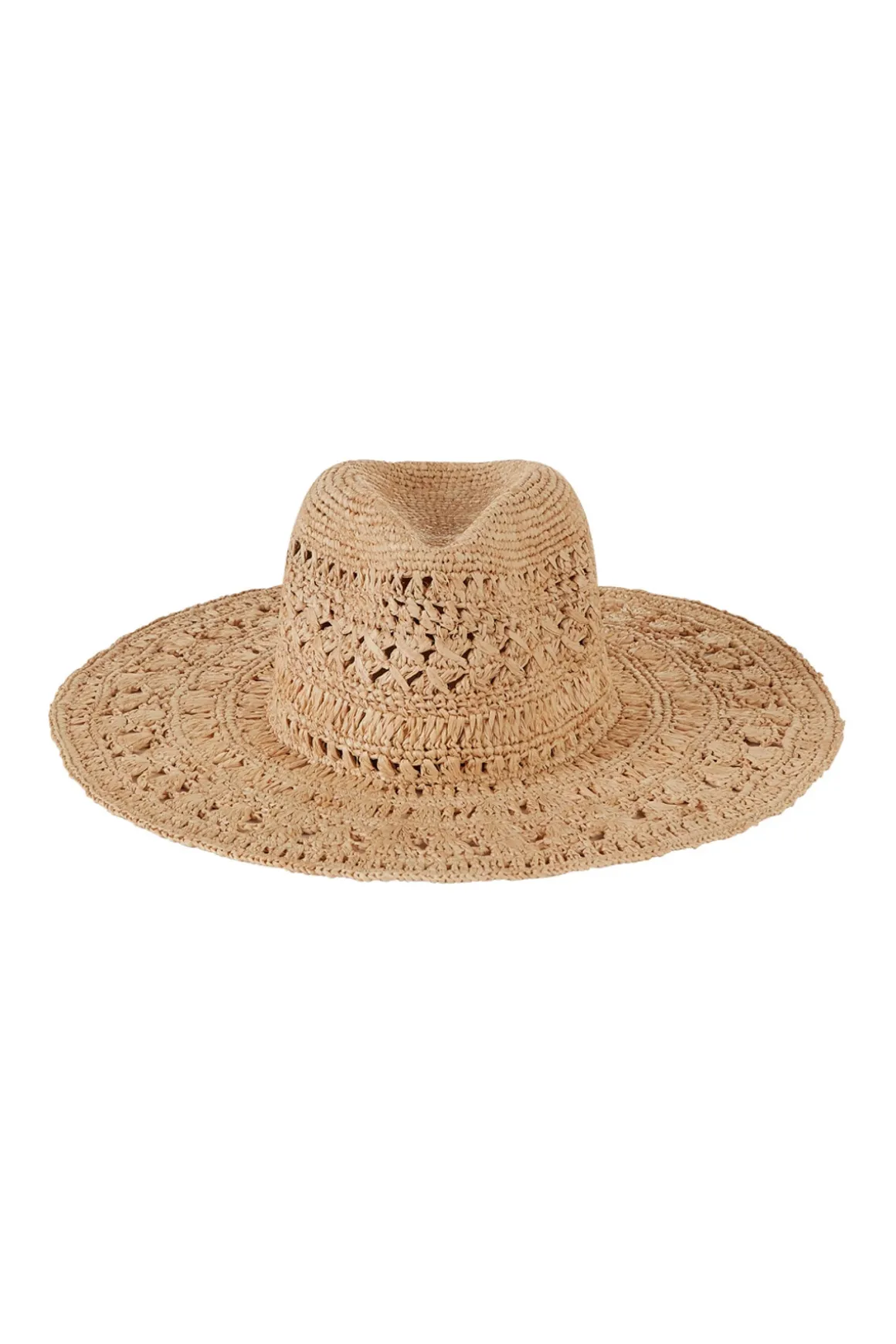 Arlet panama hat made from woven raffia features a multi-colored stripe design.