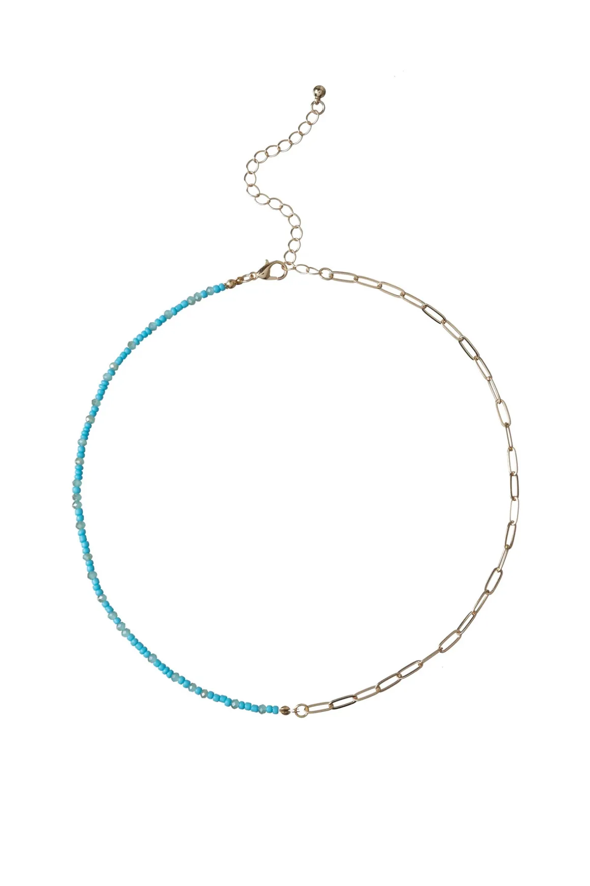 Necklace features a paperclip chain with turquoise beading and offers a lobster clasp closure.
