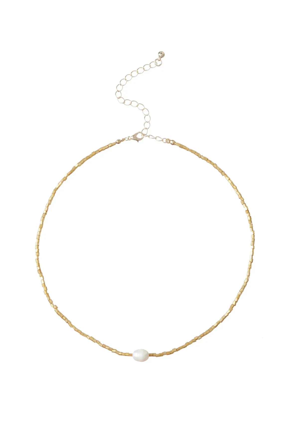 Necklace features a glass beaded chain with a cultured center pearl accent and offers a lobster clasp closure.