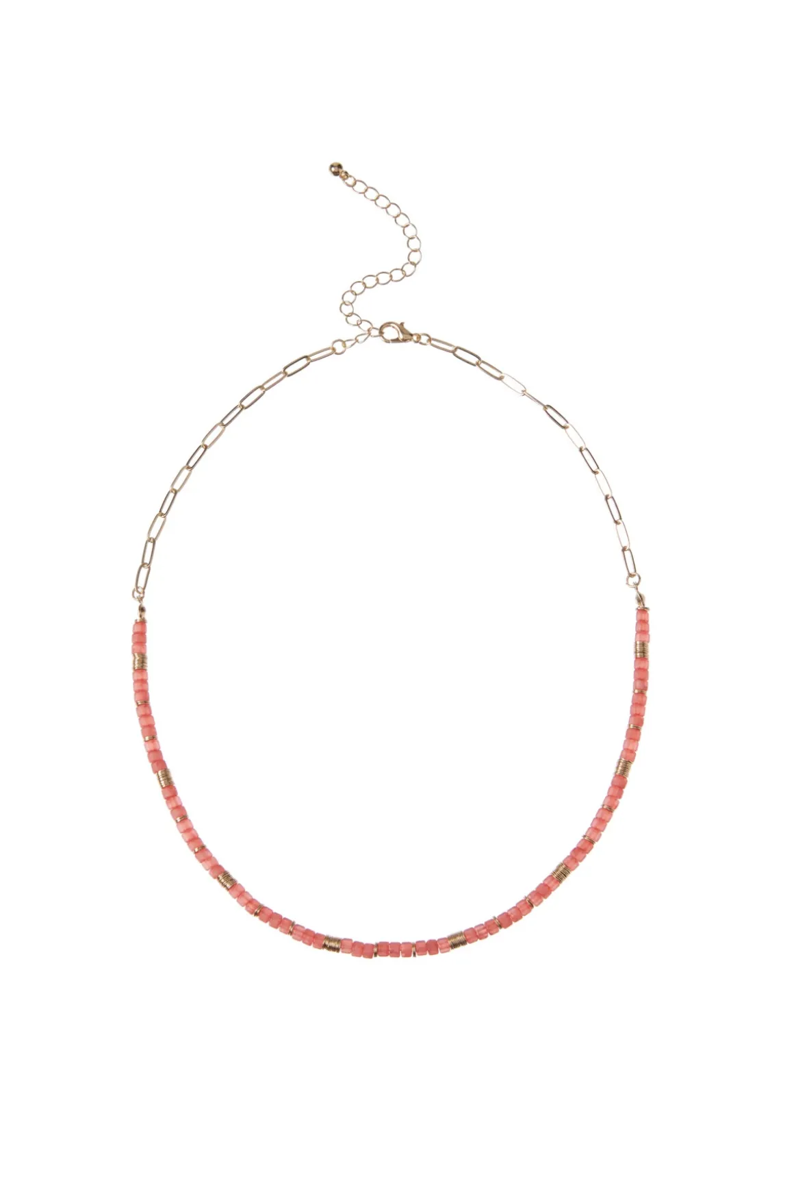 Necklace features a split chain with stone beading and a cable chain that offers a lobster clasp closure.