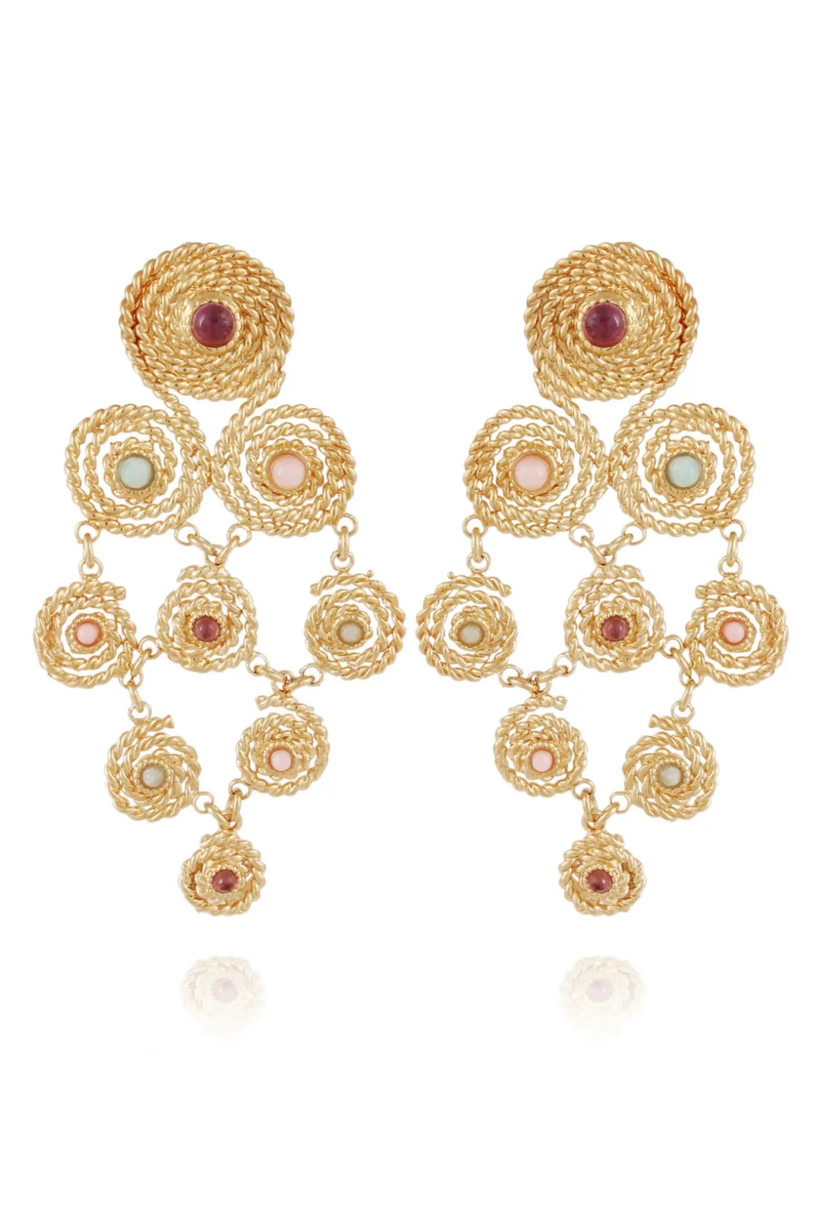 Bo Mistral Cabochon earrings feature gold plated twisted threads adorned with gemstone cabachons.