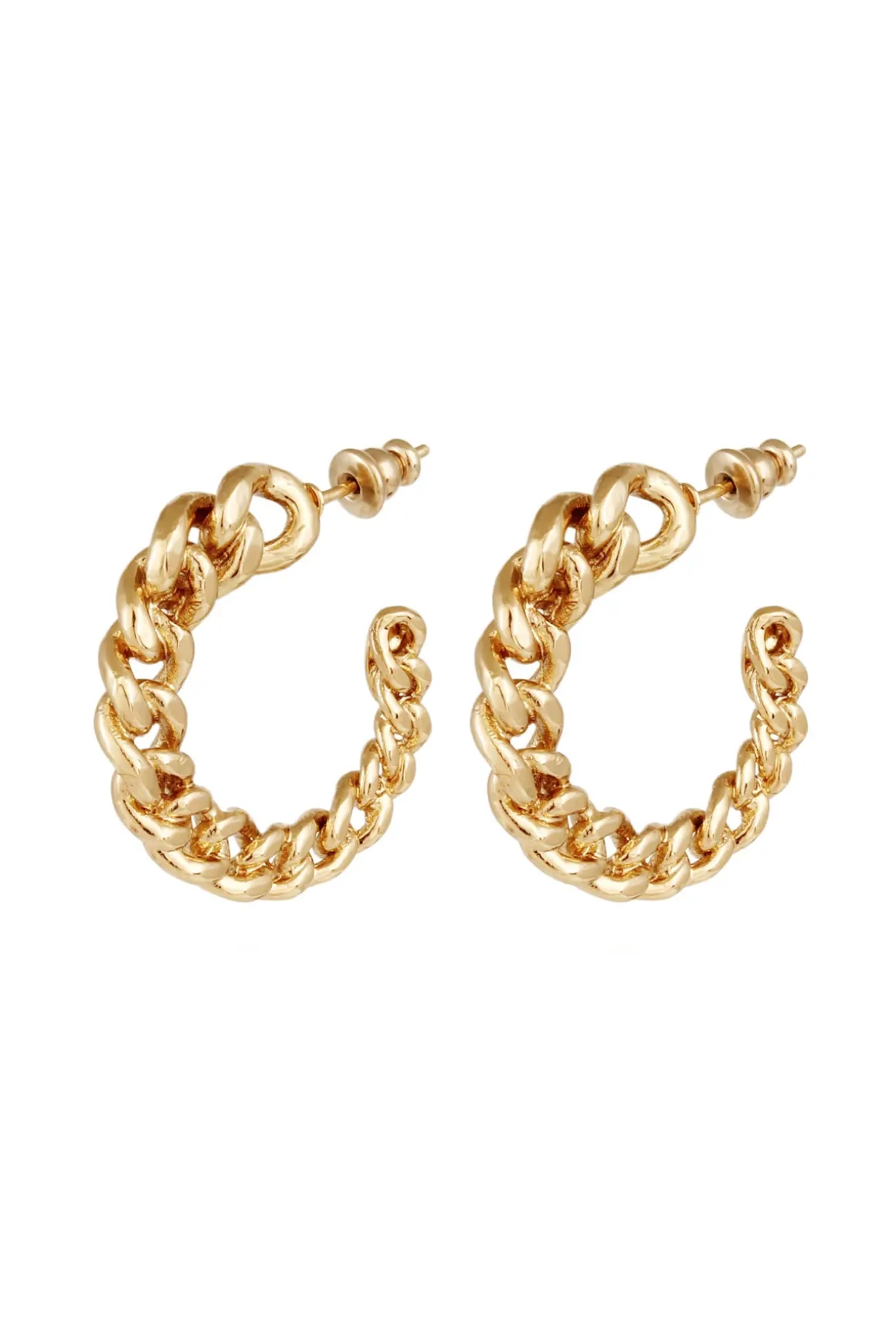 Bronxy Creole earrings features a gold plated chain link hoop with post back closures.