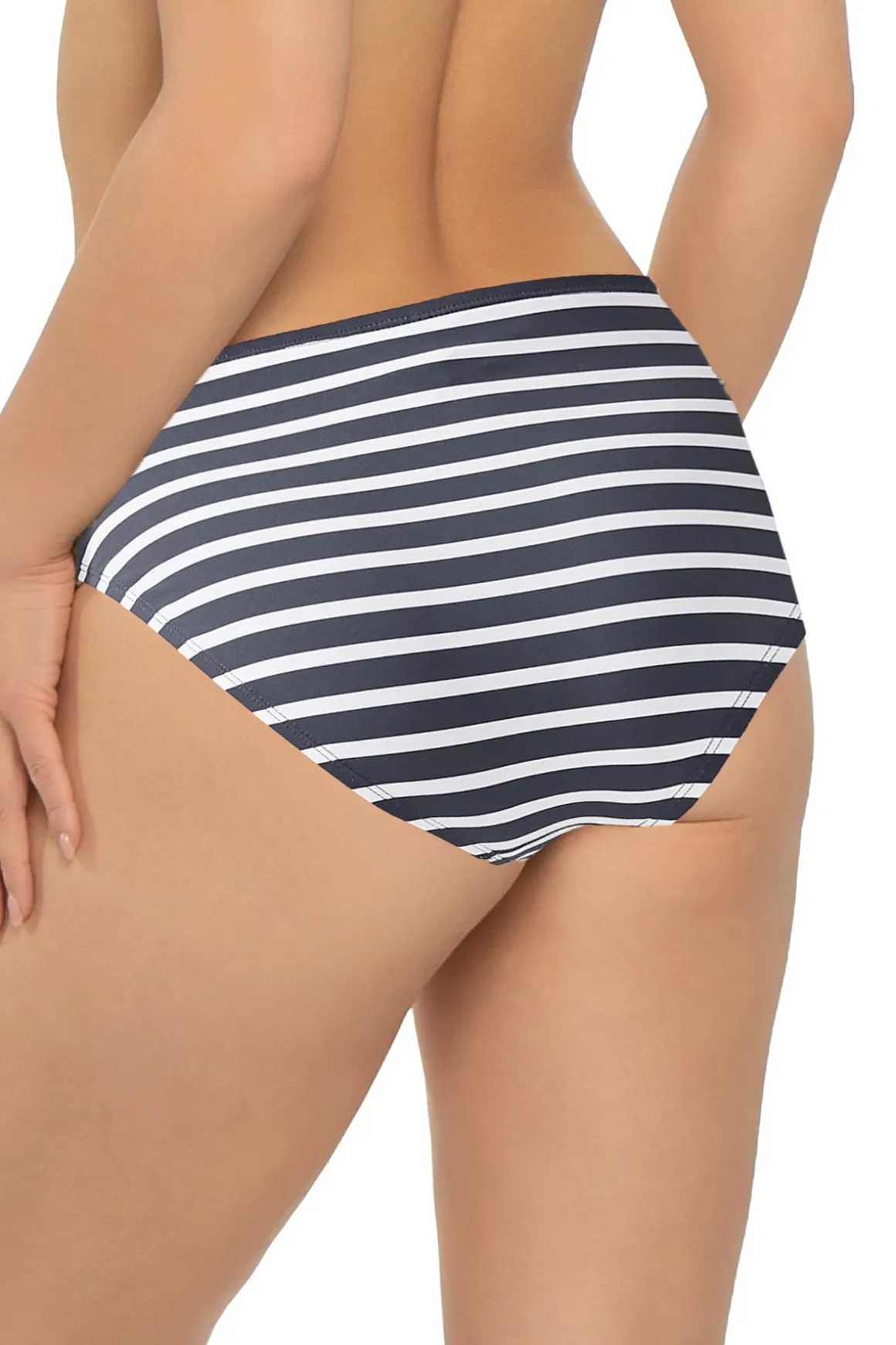 Hipster bikini bottom features a classic silhouette, striped print and offers moderate bottom coverage.
