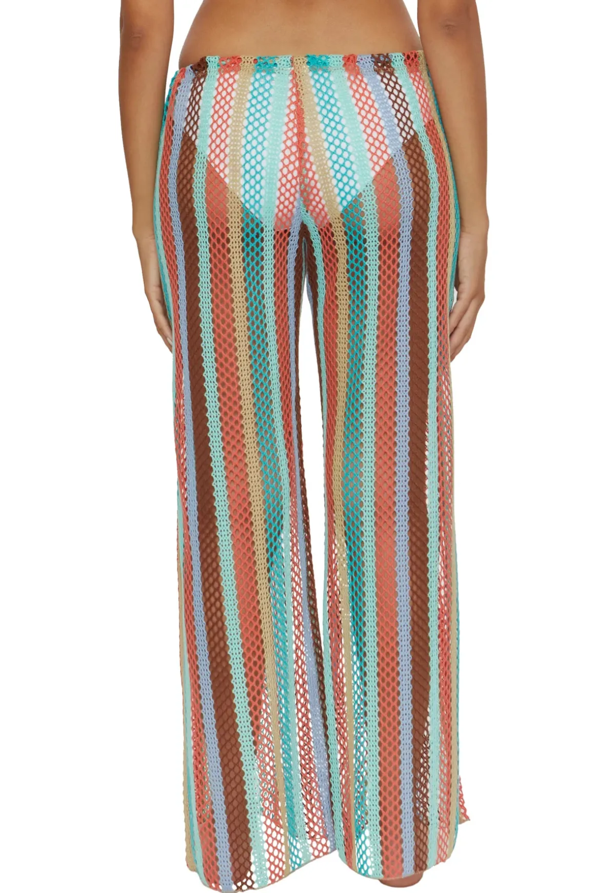 Crochet pants can be worn as a wide leg or harem pant with ties at hem.