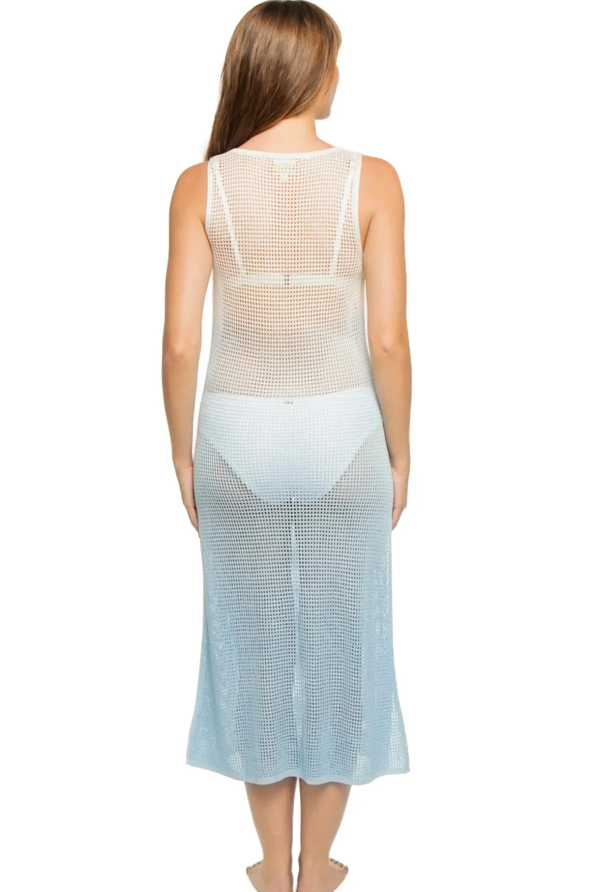 Open weave midi dress features ombre pattern, comfortable tank style and offers high side slits.