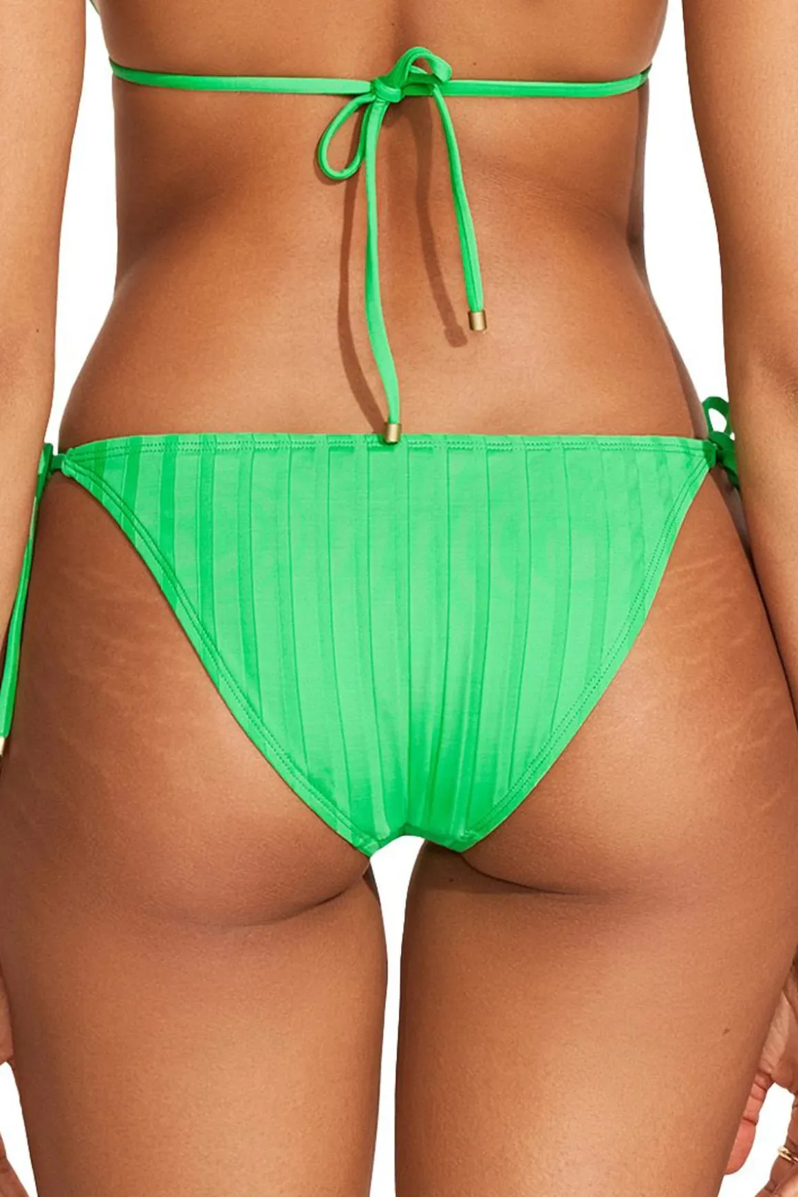 Elle ribbed hipster bikini bottom offers adjustable ties at the sides and moderate coverage.