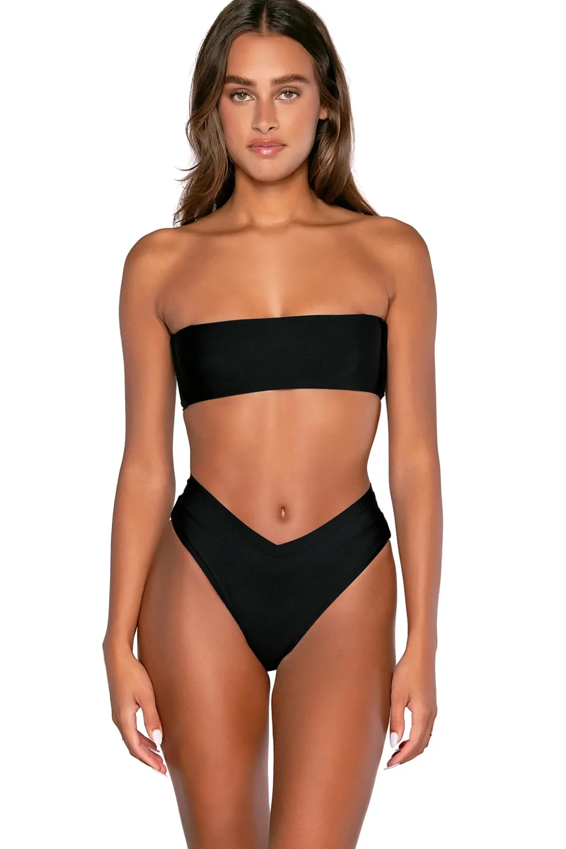 A functioning tie for a minimal customizable fit and removable straps for a seamless tan. The Eloise Top can be worn two ways, with the tie in front or in the back.