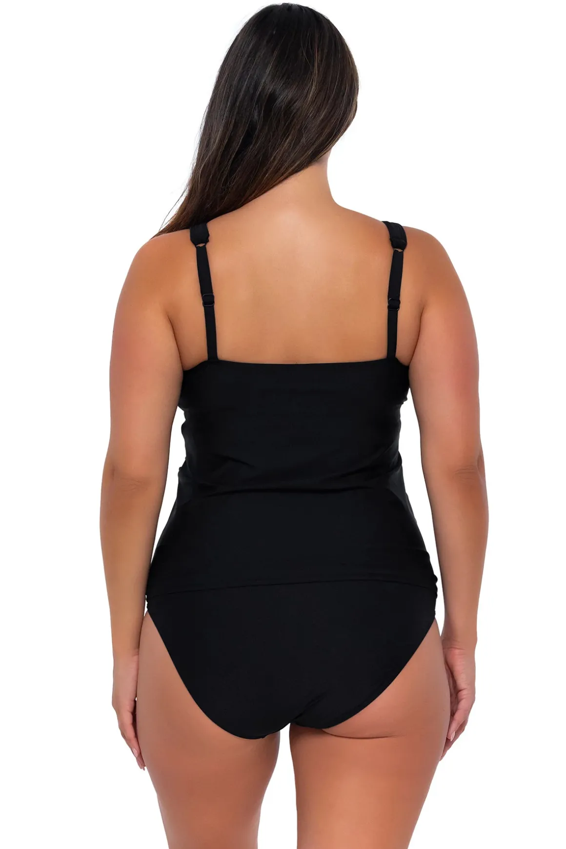 The Emerson tankini is a full coverage swim top with a slim fit. The shirred waist provides flattering modesty. A cute, fixed lace-up center adds stylish detail. Wide, adjustable straps give amazing support and comfort. Also features removable cups, underwire, and a J-hook for racerback conversion.