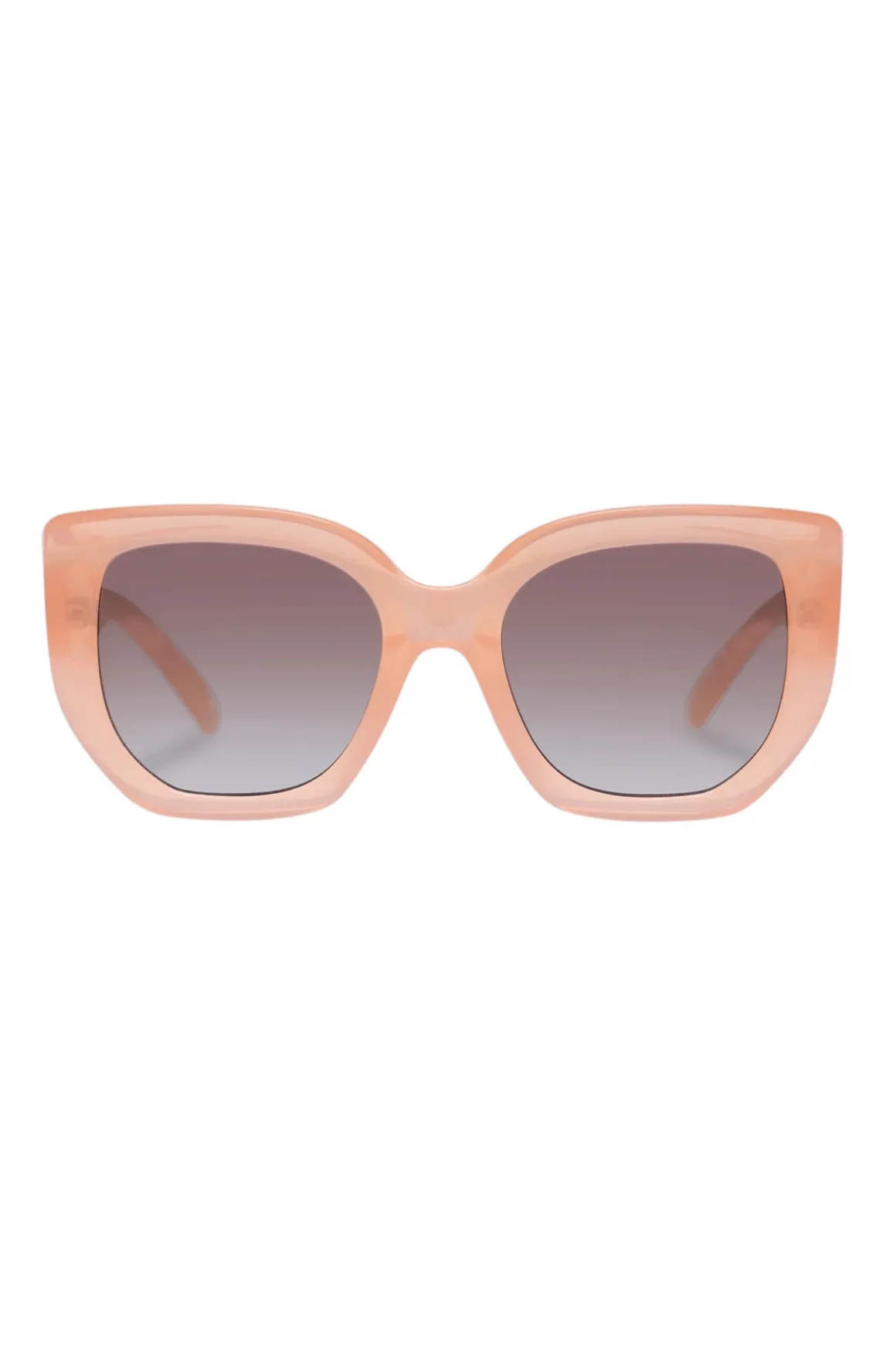 Euphoria sunglasses feature a square frame and a modern, minimalist design accentuated by gold metal hardware, and a stylish brown gradient tint. Each pair includes a Le Specs protective pouch and microfiber cleaning cloth.