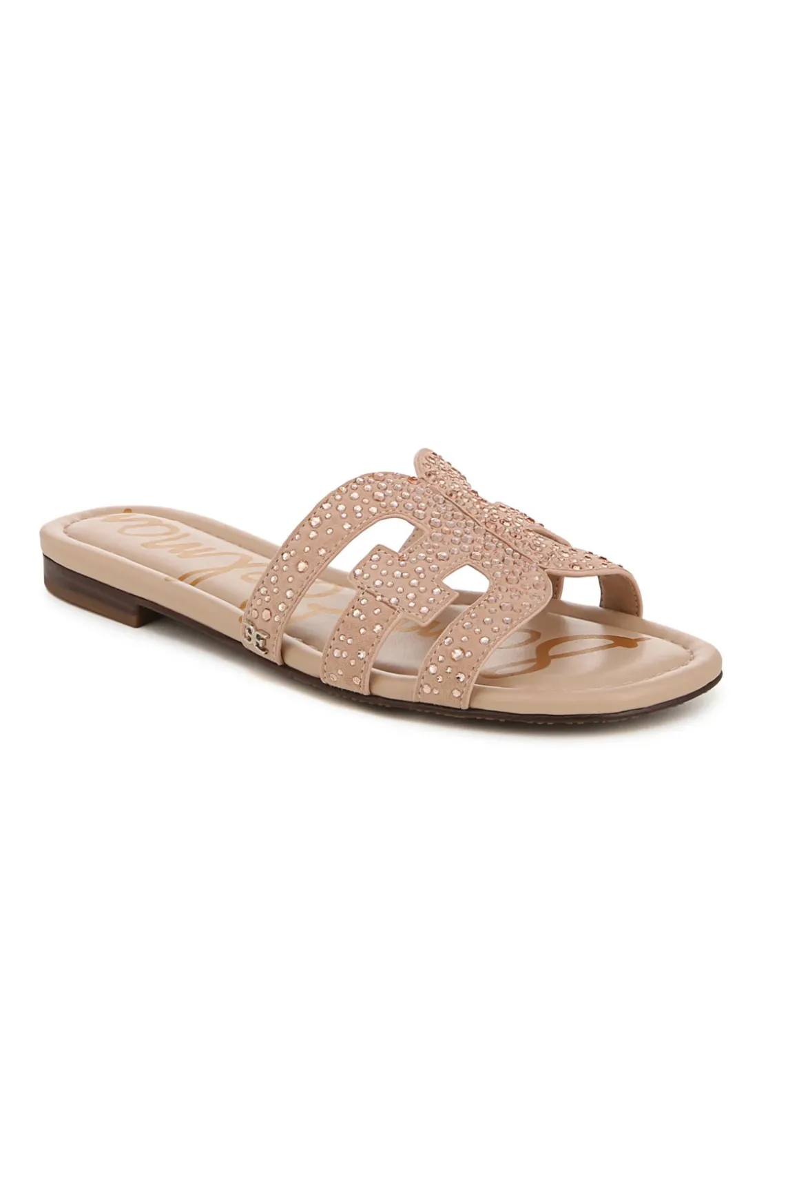 Gem slide features crystal embellishments and offers a slightly elevated heel.