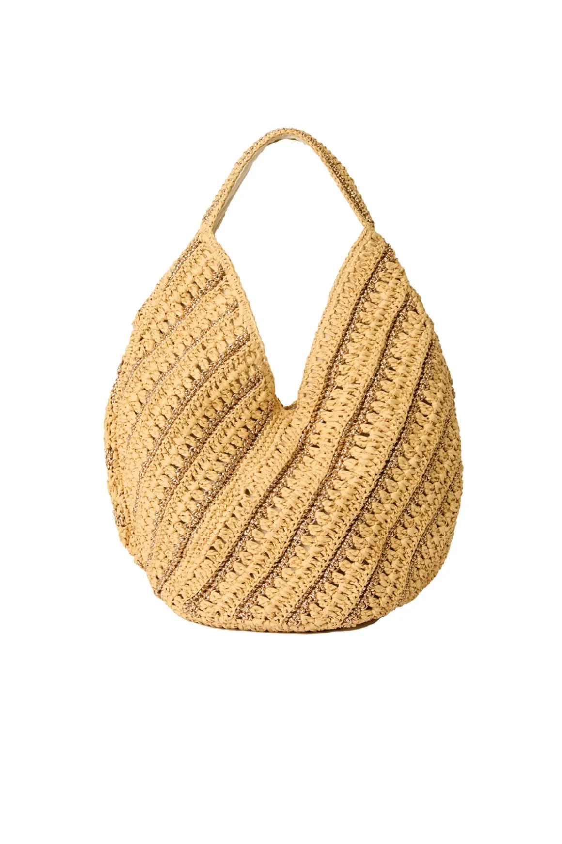 Woven straw hobo tote offers interior pockets and a magnetic closure.