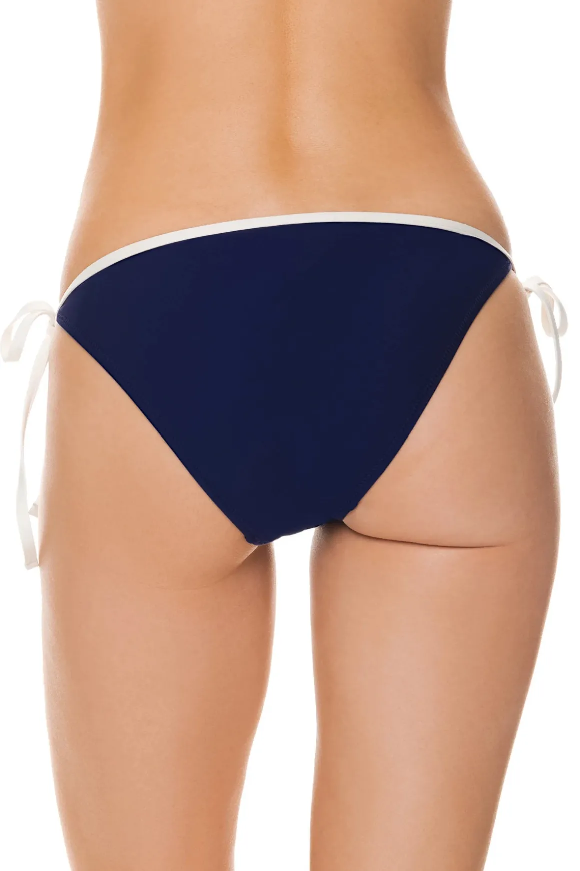 Hipster bikini bottom features adjustable tie sides and offers moderate coverage.