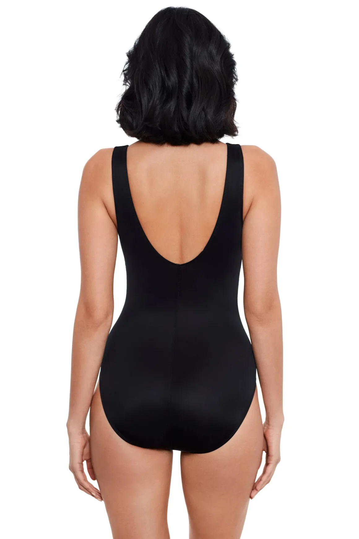 - Miraclesuit’s proprietary Miratex fabric provides allover body control, shapes and slims.