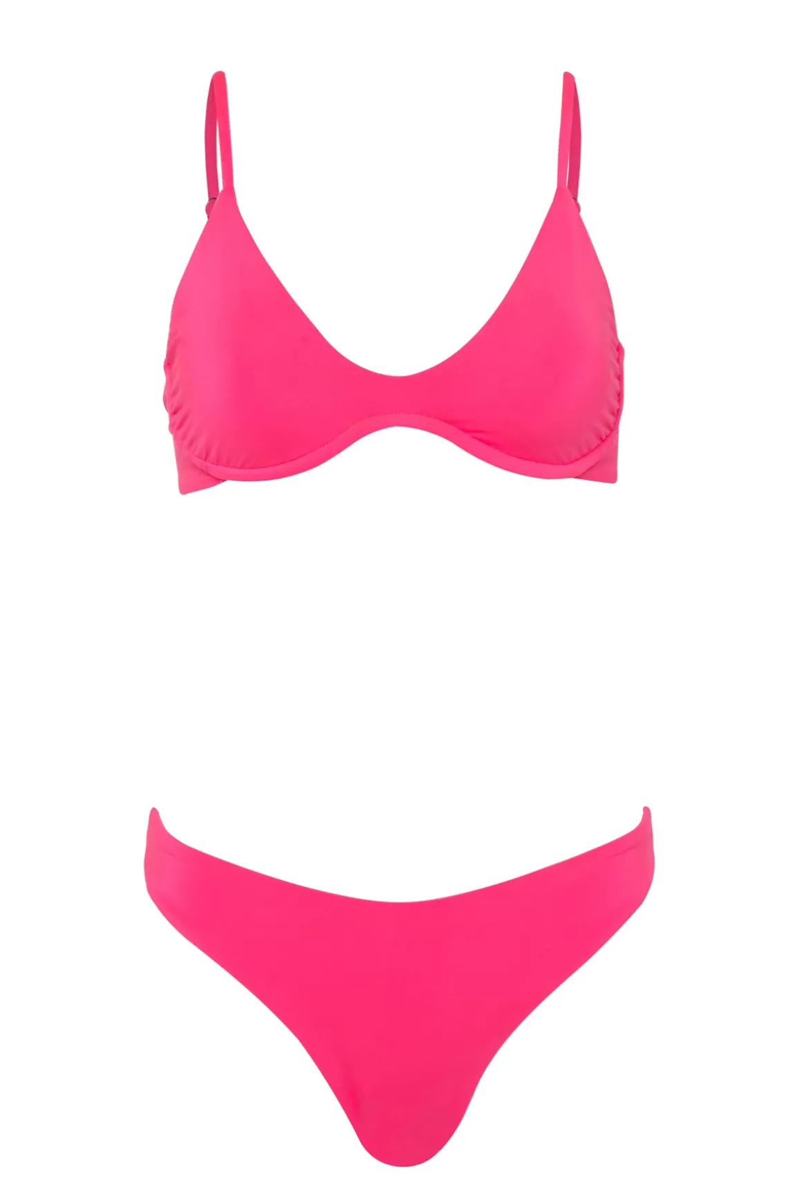 Irene bikini top reverses from solid to floral print and features adjustable straps, underwire, and hook back closure.