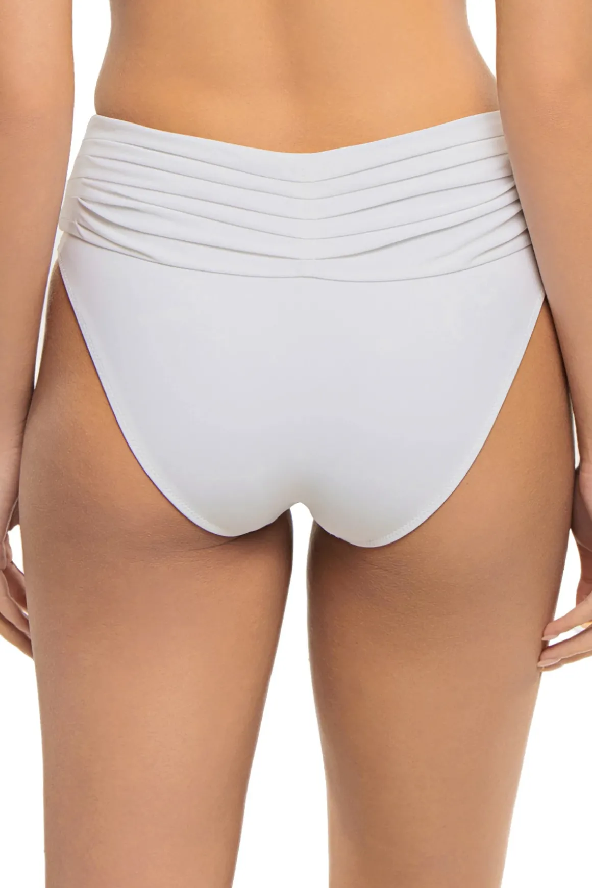 Ivo bikini bottom features a high shirred waist and offers moderate coverage.