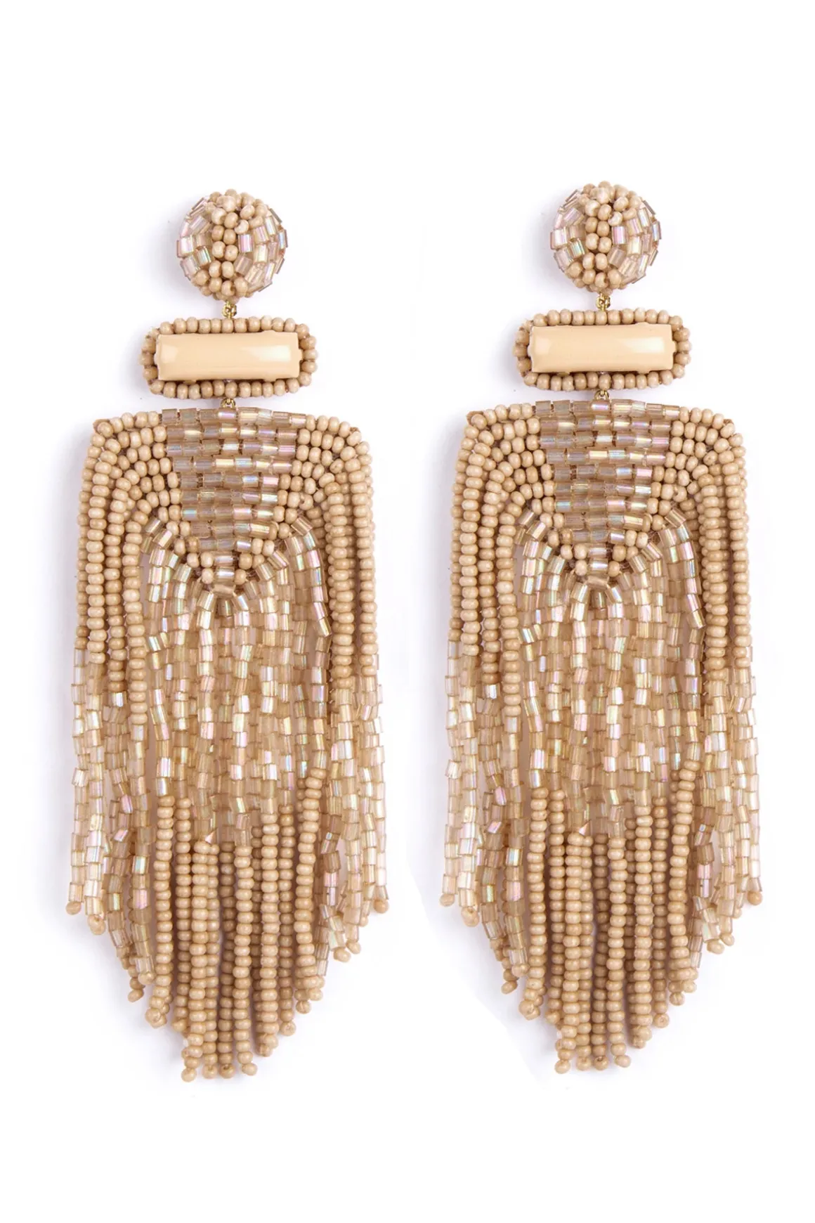 Jody beaded earrings feature glass beads, enamel, and stainless steel posts.