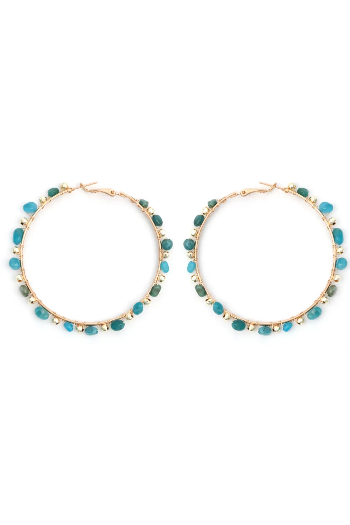 Earring features large turquoise stone, glass crystal, and lever-back closure.