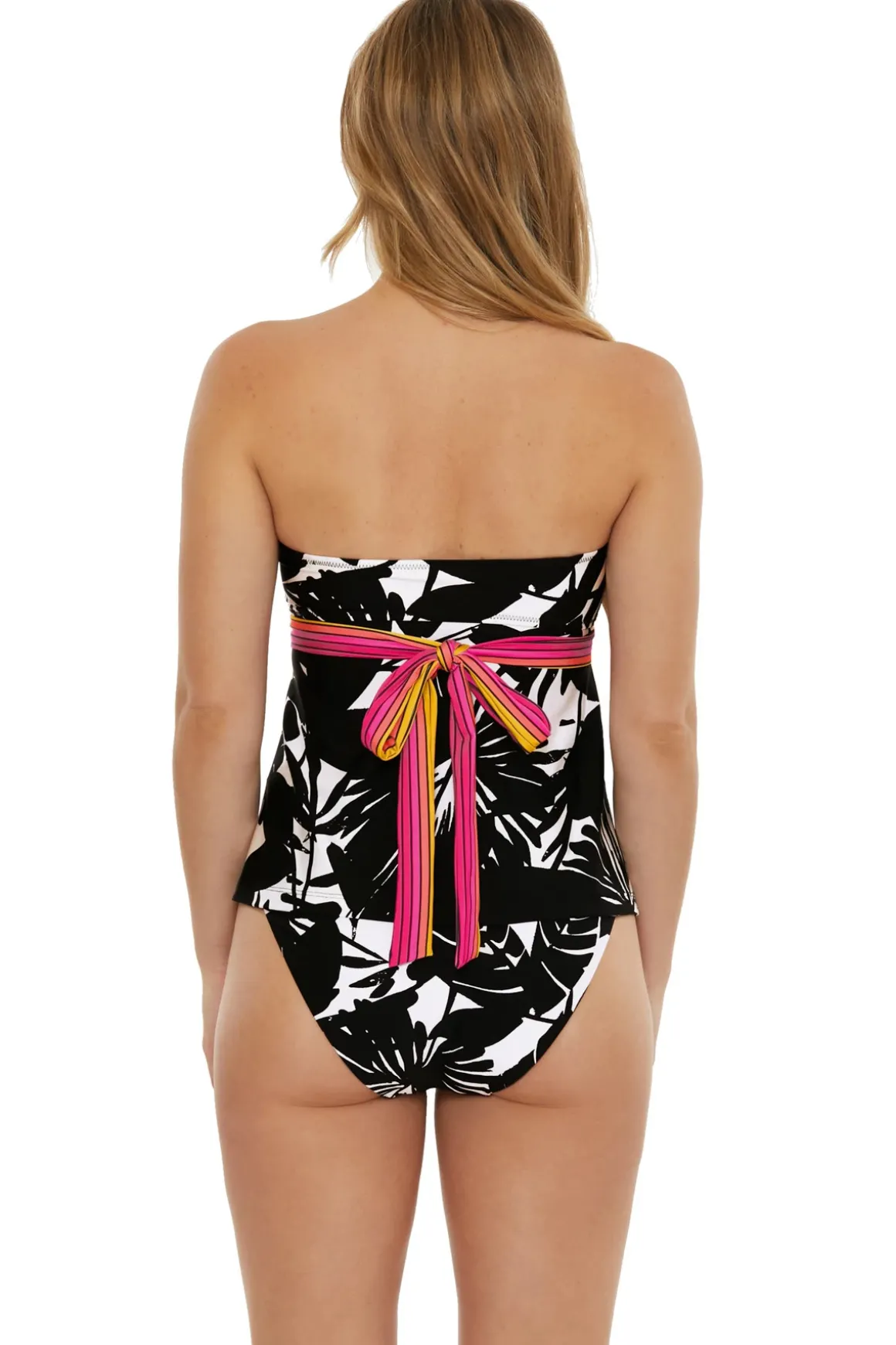 Lennox tankini top features a tropical print and can be worn multiple ways, as a strapless bandeau, halter or over the shoulder.