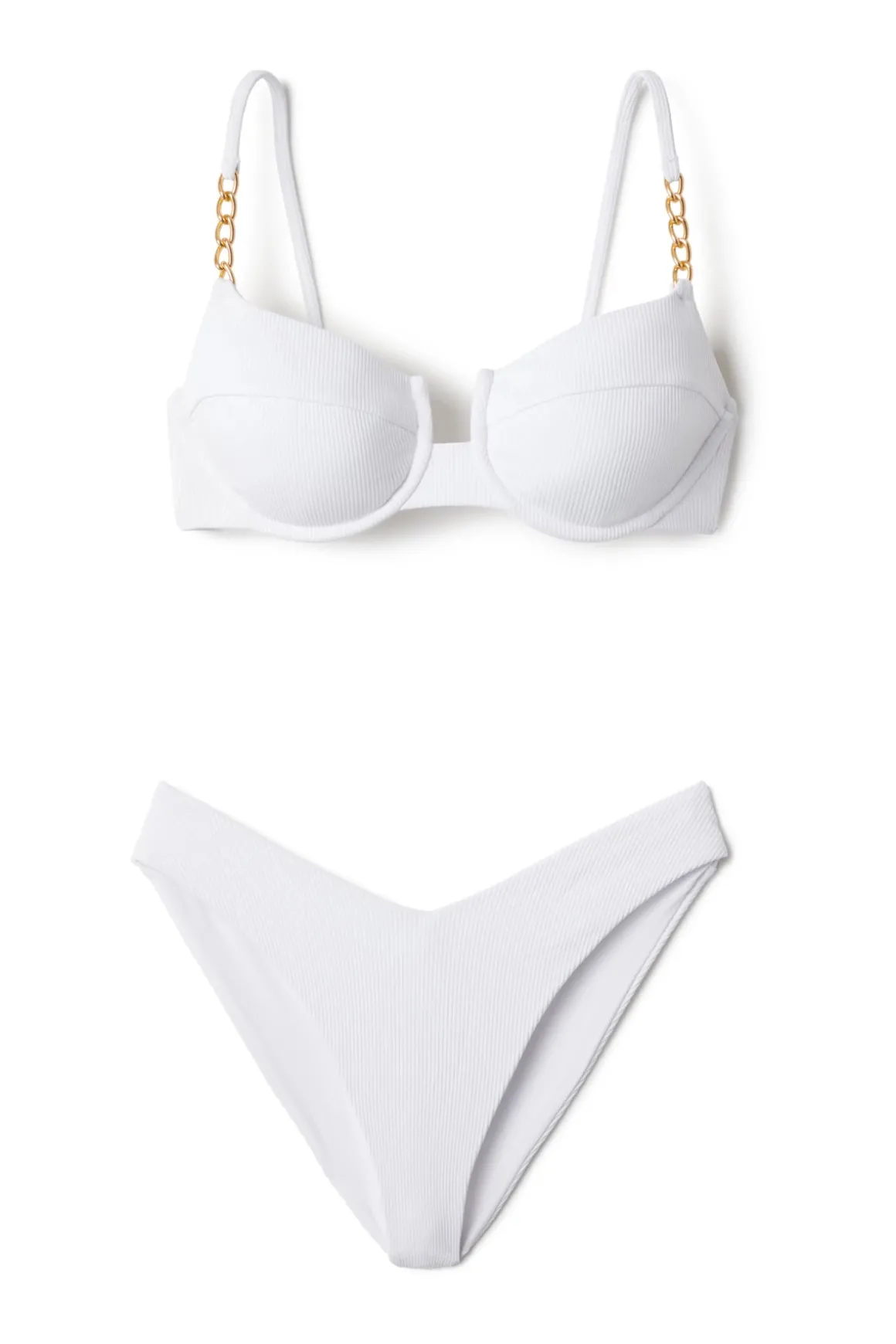 Malibu ribbed brazilian bikini bottom offers a high leg cut, v front and back, and minimal bottom coverage.