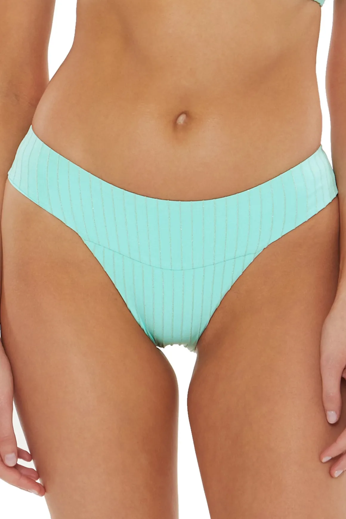 Maui hipster bikini bottom features ribbed fabric and offers skimpy bottom coverage.