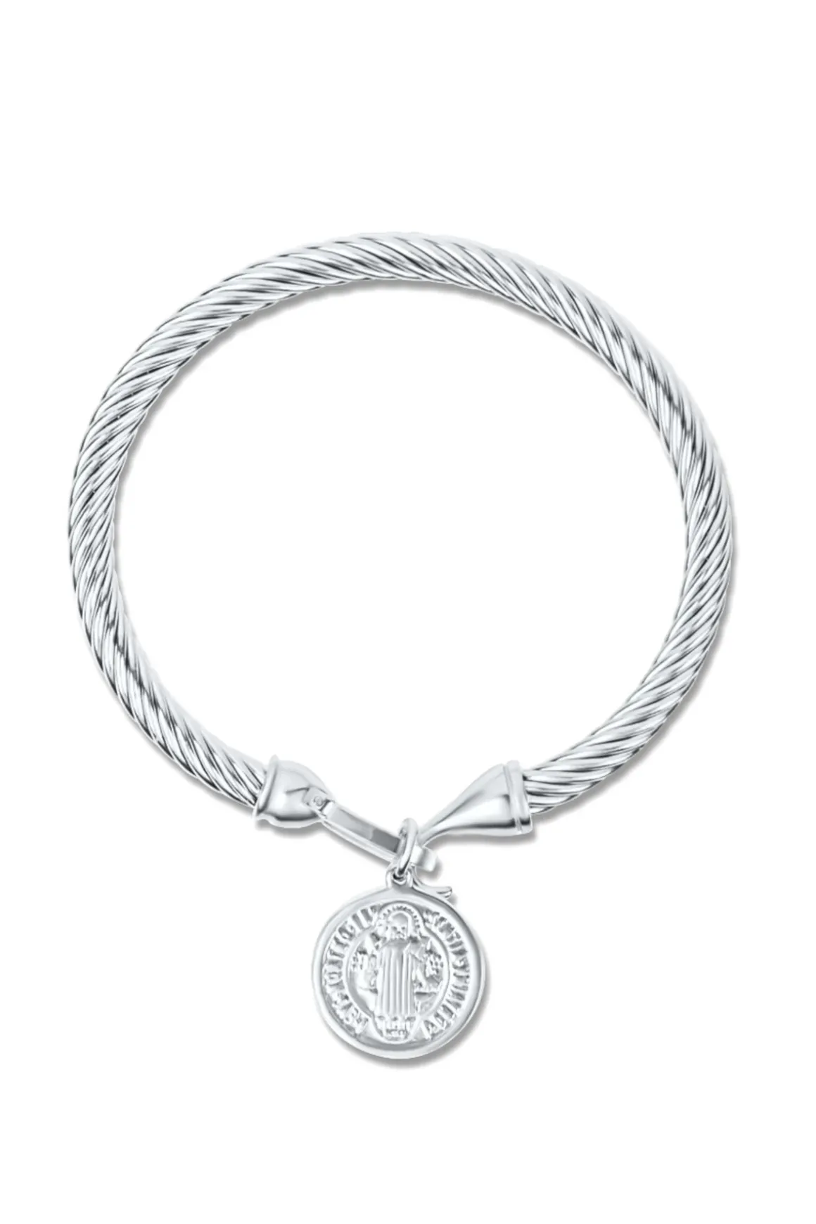 Maya bracelet is water resistance and made from stainless steel. Features a a coin pendant and a hook closure.