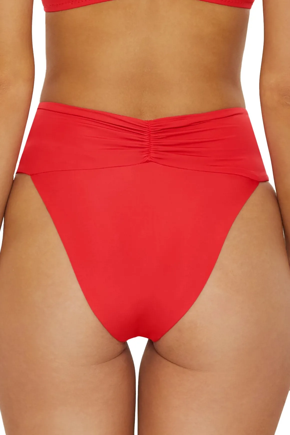 Miami bikini bottom features a high waistline, shirred front and back detailing/ Offers a high leg cut and cheeky bottom coverage.