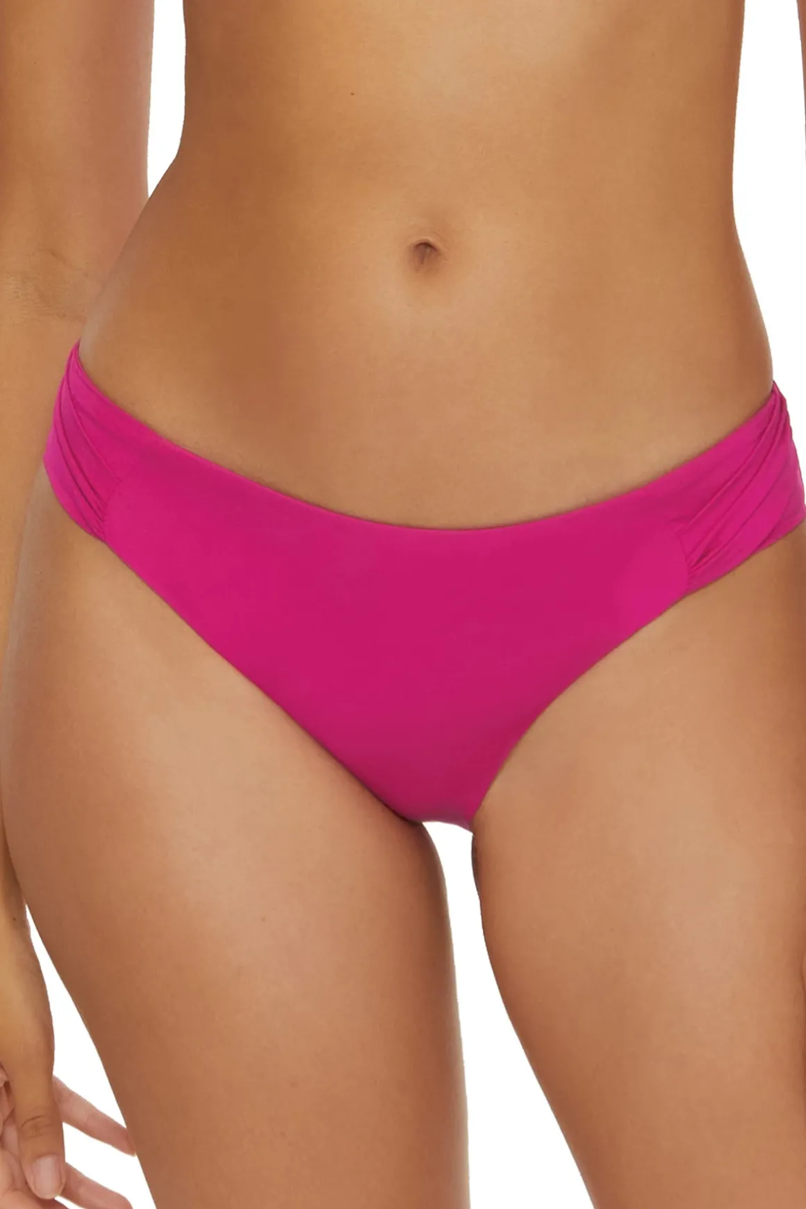 Monaco hipster bikini bottom features shirred tab sides and offers a French cut with moderate coverage.