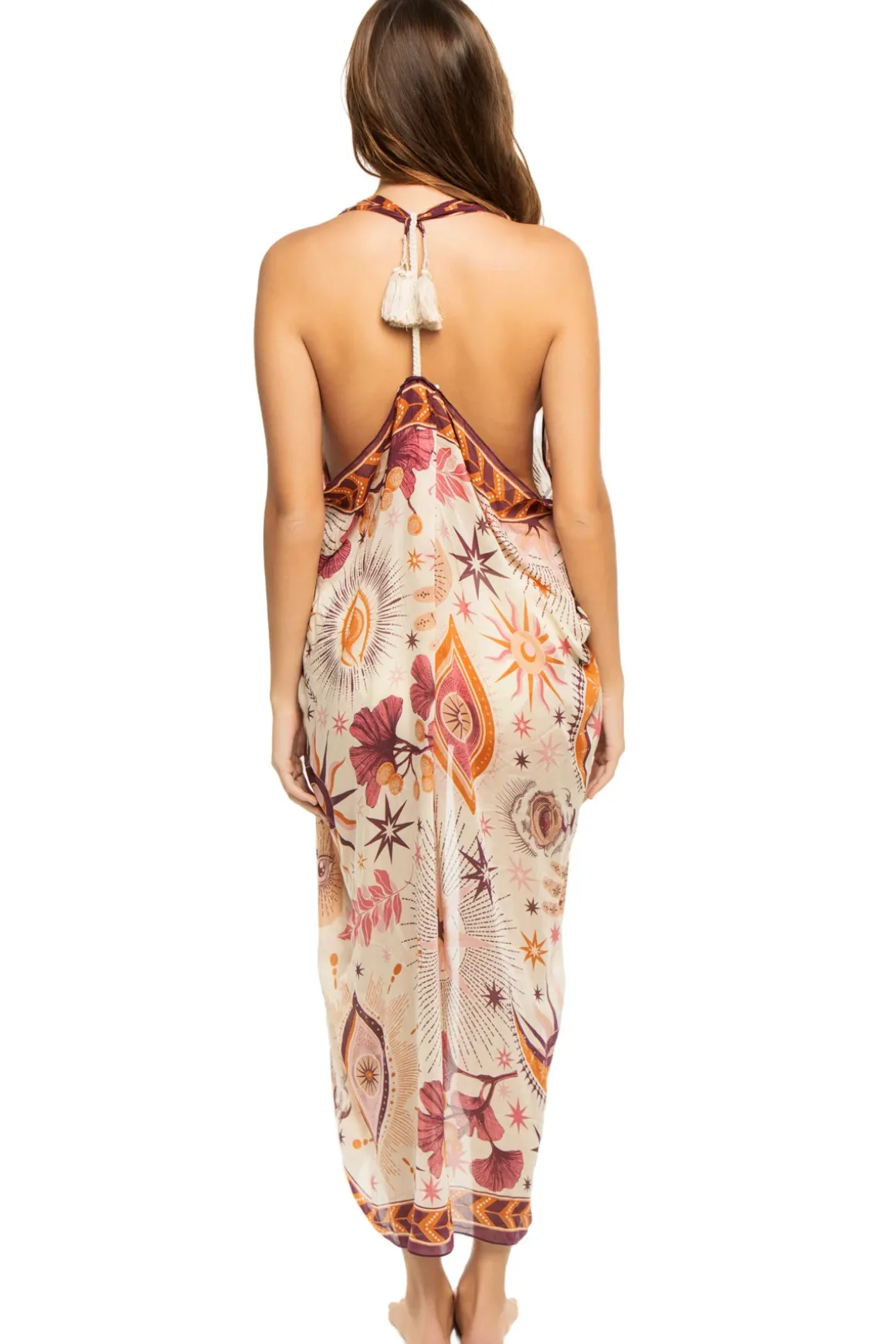 Kimono features mystic evil eye print and an open front.
