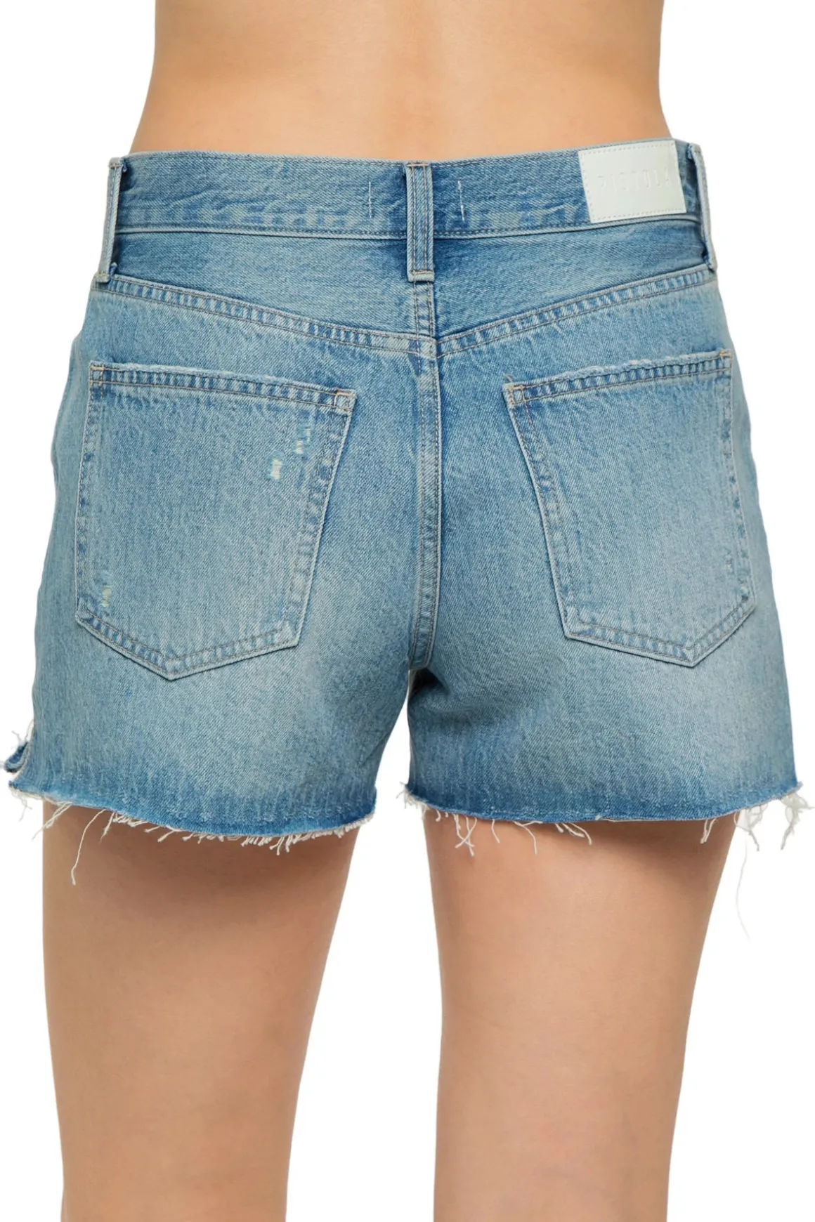 Nova denim shorts crafted from rigid non-stretch denim to hold its shape feature a raw-frayed hem with hints of distressing throughout.