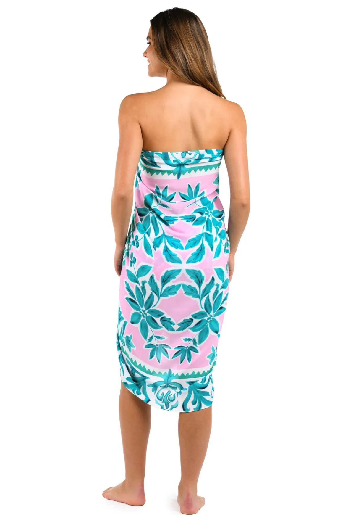 Pareo features a vibrant print and an adjustable wrap tie for versatile styling.