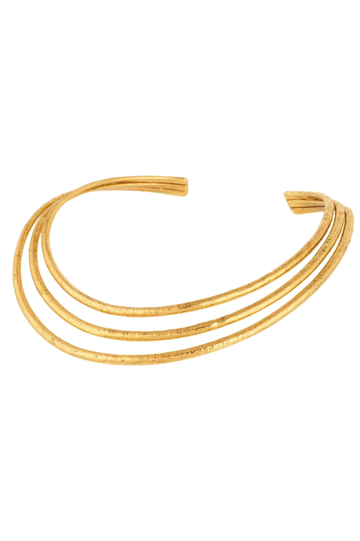 Osiris triple band necklace features three delicate gold-plated brass bands that wrap around the neck.