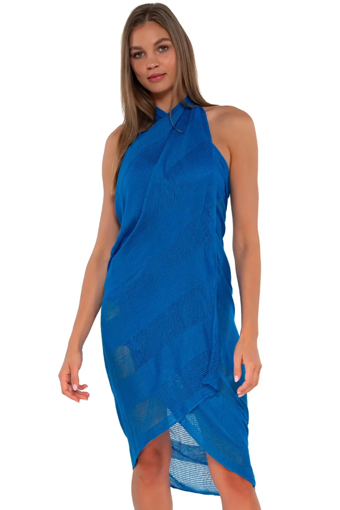 If you are looking for versatility, look no further. This pareo can be worn tied at the hip, crossed and tied behind the neck as a dress, wrapped and tied over one shoulder, or folded and tied at the waist for a shorter skirt. Tassels at two corners are a cute addition.
