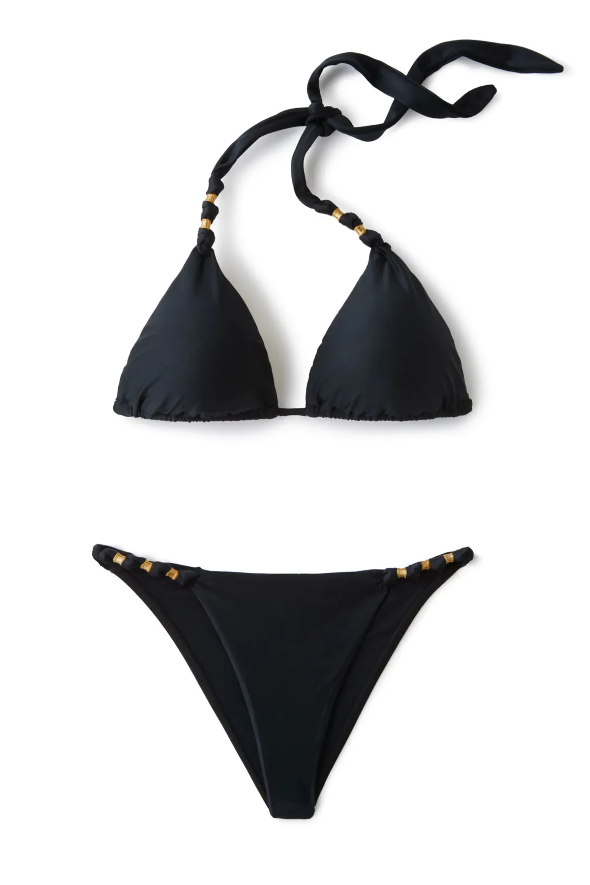 Sliding triangle top with removable padding, ties at neck and back.