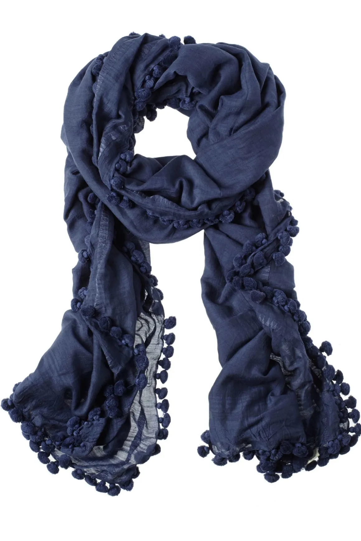 Trademark Dupatta shawl, embellished with pom poms.
