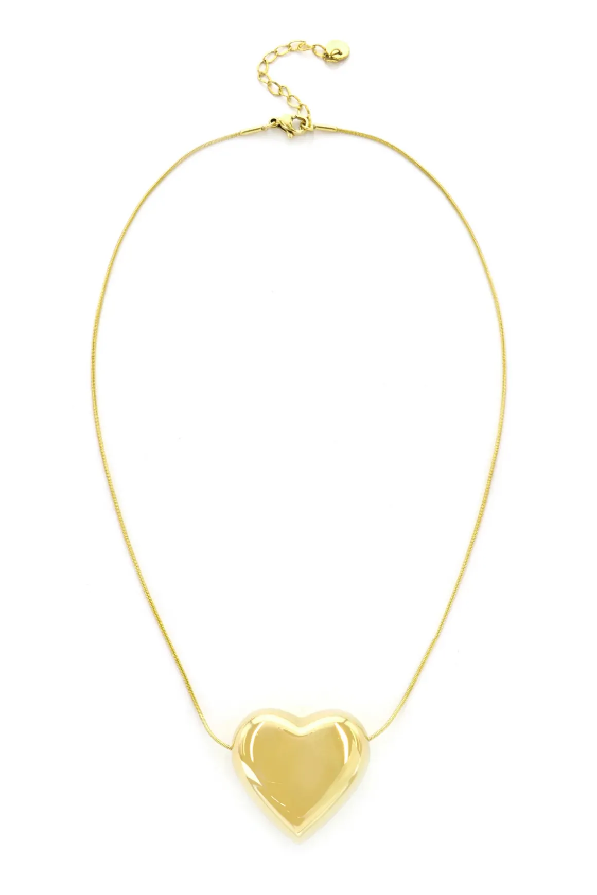 Necklace features a puffed heart pendant and offers a lobster clasp closure.