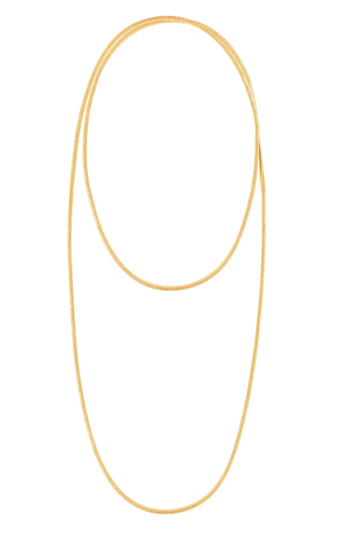 Snake necklace is an extra long 22k gold plated brass chain that can be worn looped around the neck and body in a variety of ways.