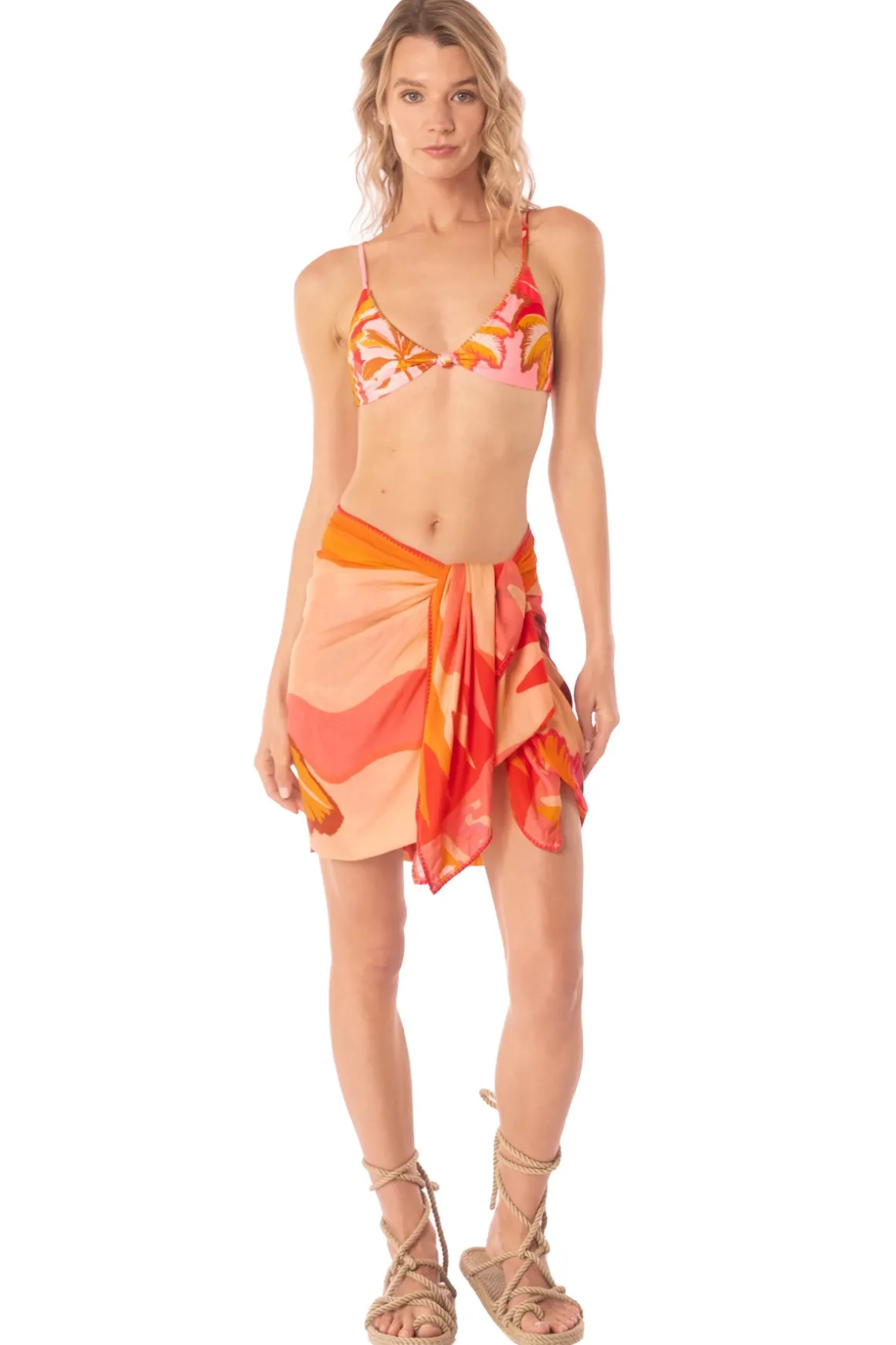 Pareo features a vibrant tropical print and can be styled in multiple ways, with a versatile tie closure for a customizable fit.