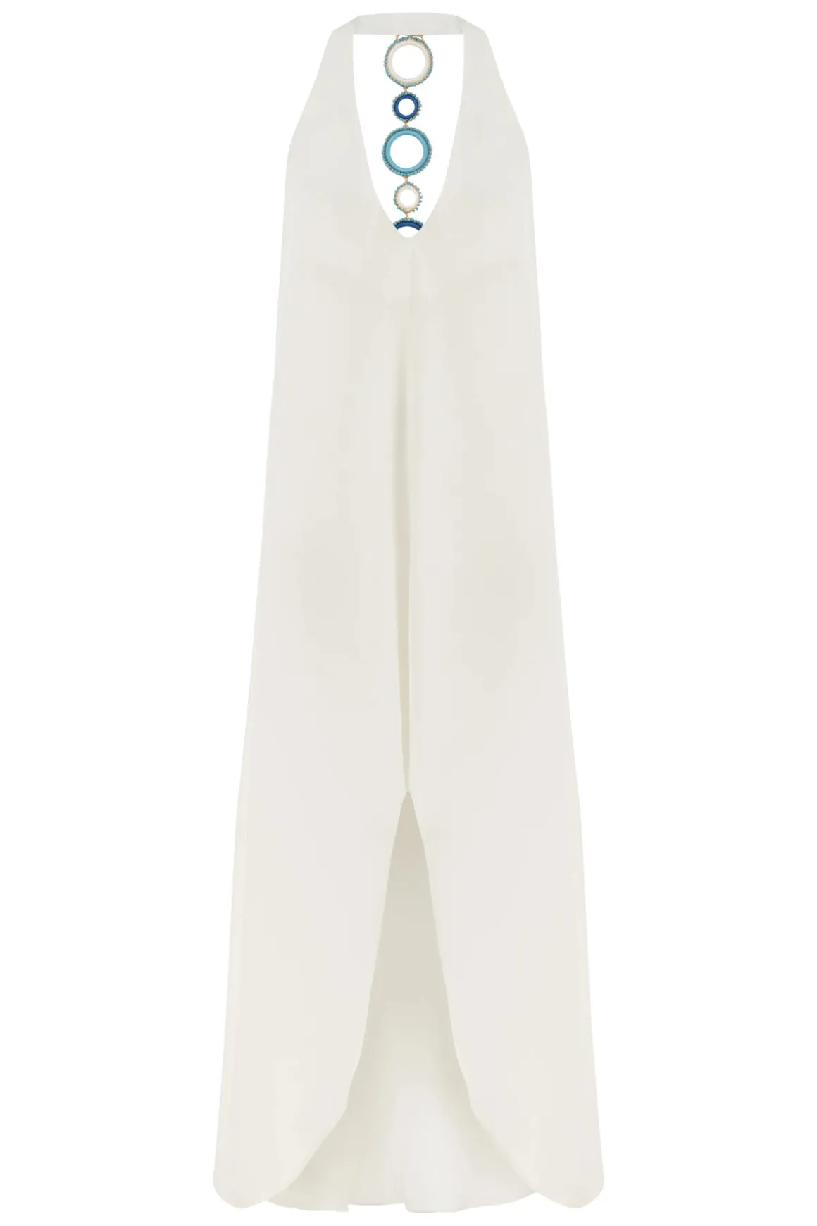 Hi-low midi dress features open back with ring detailing.
