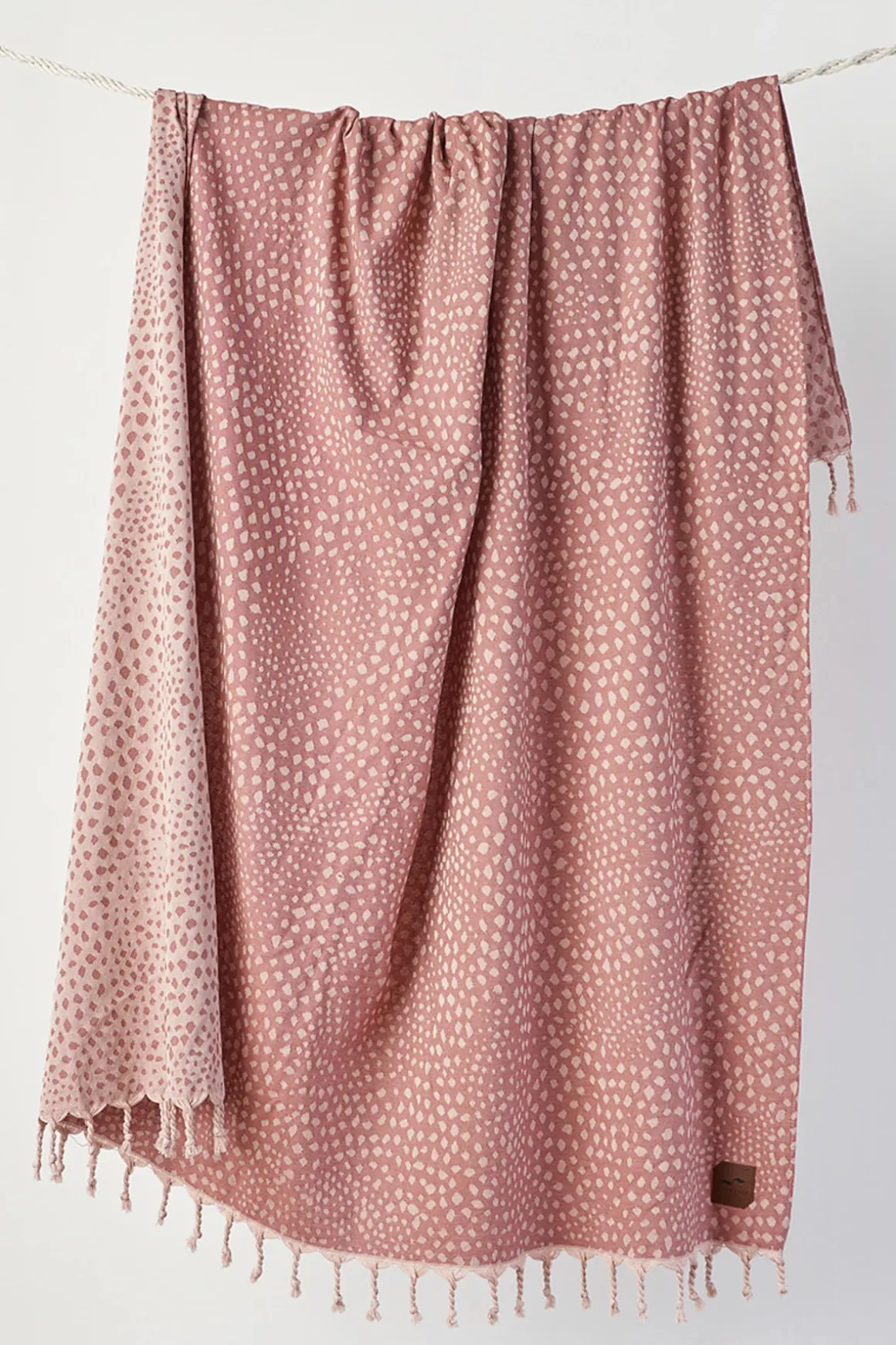 Tessa is a light and easy turkish style chambray beach blanket, perfect for any grab-and-go destination. Features a double sided woven design with fringe ends. Made from sustainably sourced cotton.