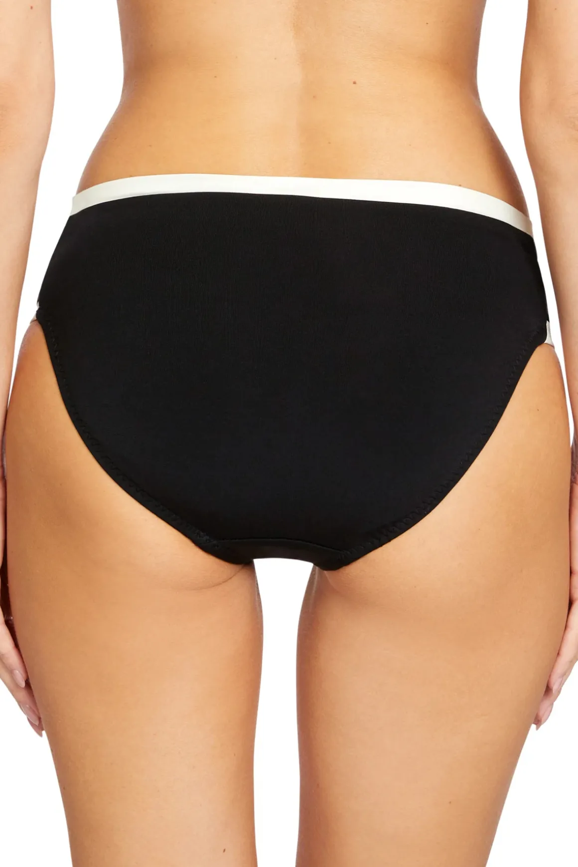 Hipster bikini bottom features a twisted banded waist and moderate bottom coverage.