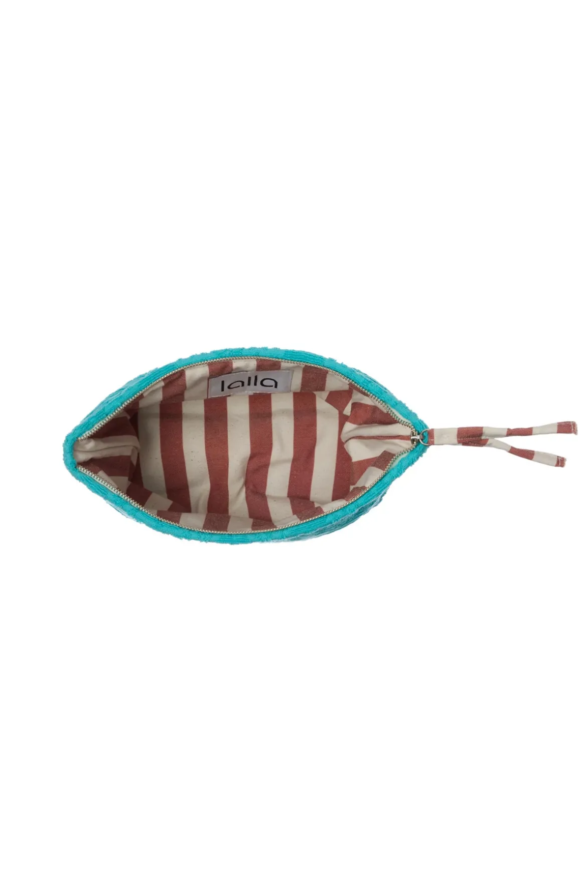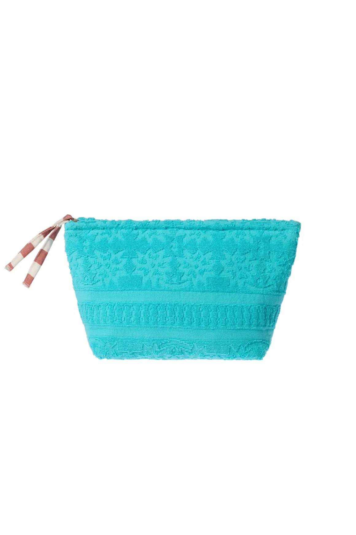 The Walakin Eponge clutch is a compact carry-all made of cotton towel material featuring an African wax tassel zipper and interior lining. Color of lining may vary.