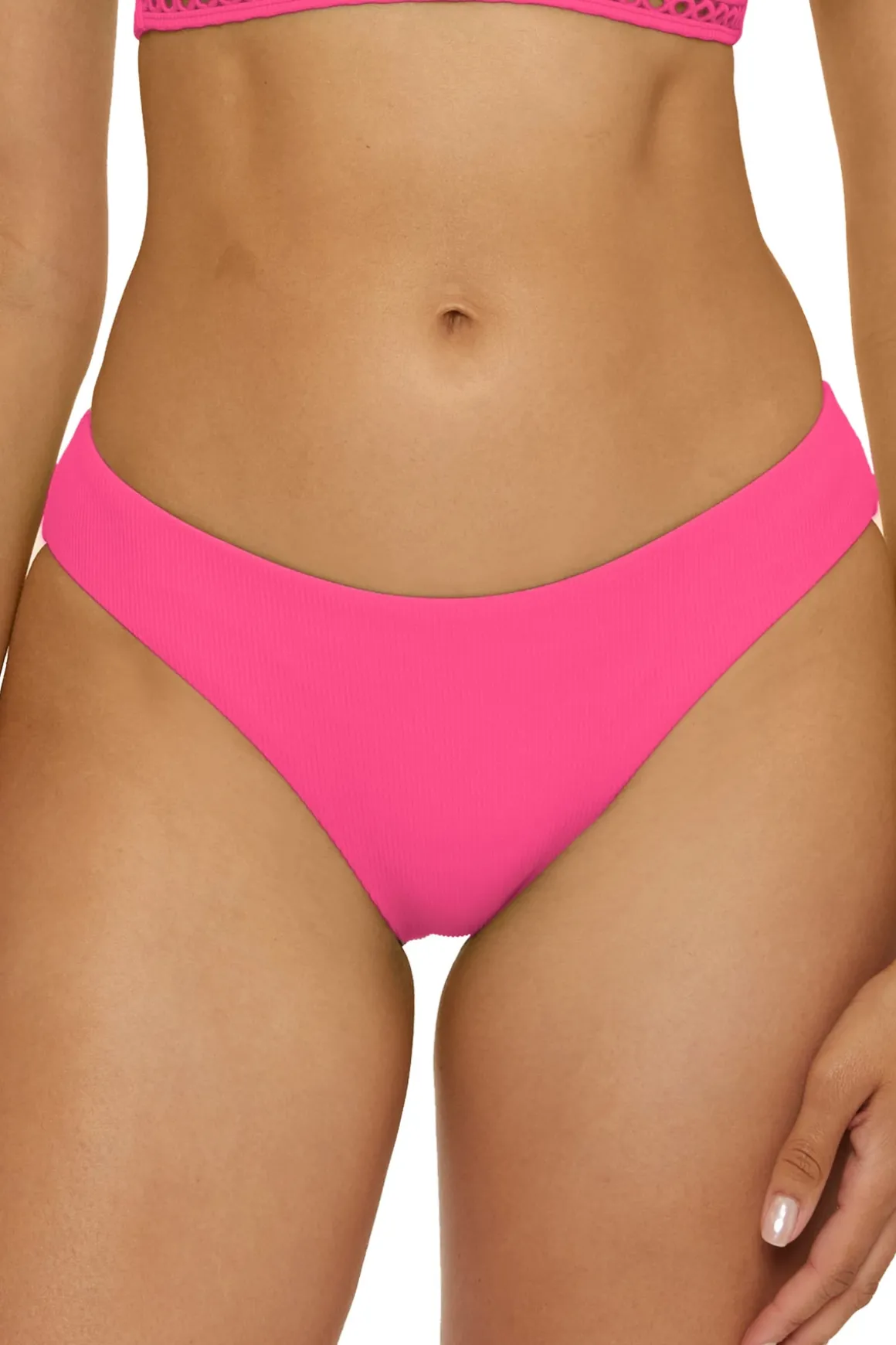Adela hipster bikini bottom features fine ribbed texture, cinch back and moderate coverage.