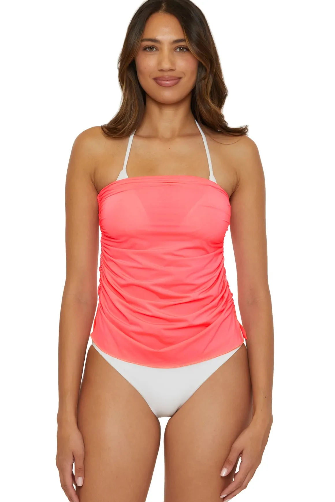 Alessandra sarong features shirred detail and side seam slits and can be worn as a mini skirt or strapless tube top.