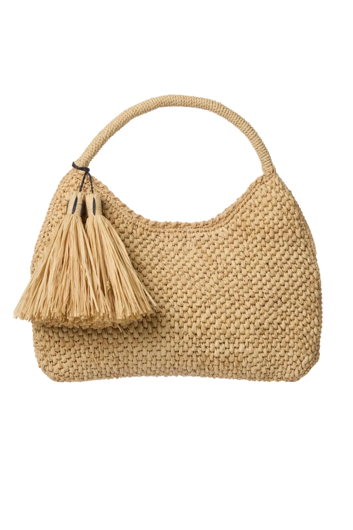 Anyahand-crocheted raffia clutch is adorned with a bold tassel detail and offers an inside pocket and a snap closure.
