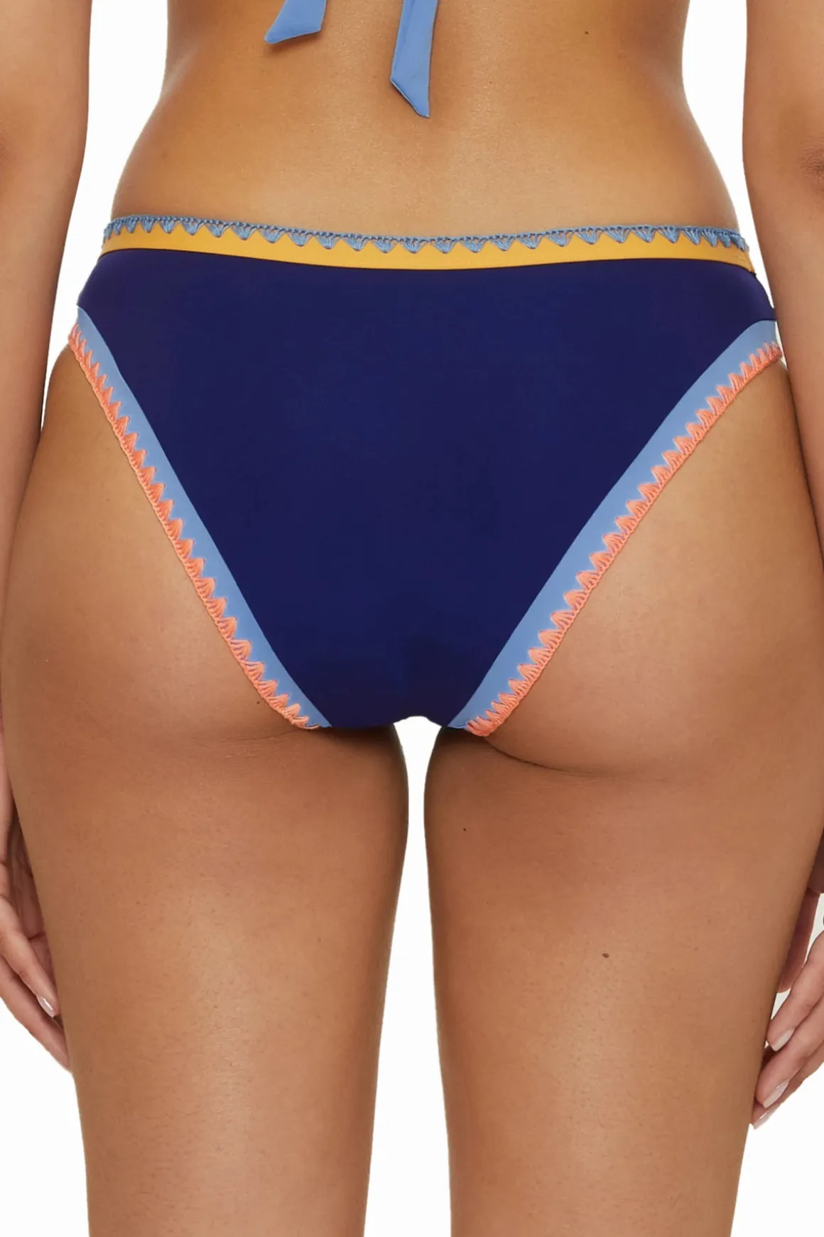 Avila hipster bikini bottom features color block banding and contrast shell stitching. Offers moderate bottom coverage.