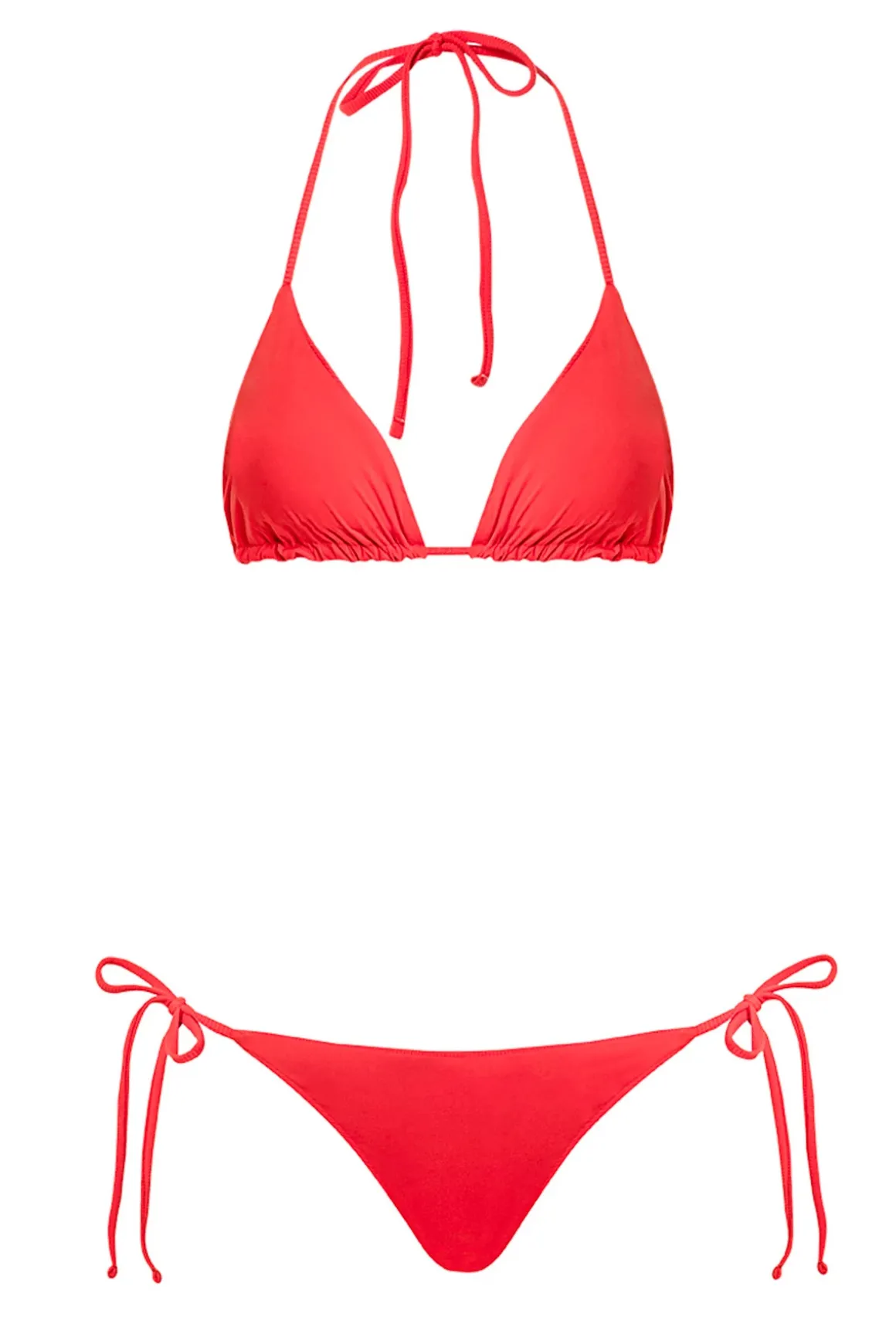 Triangle bikini top is reversible and features textured fabric, removable soft cups and offers adjustable ties at neck and back.