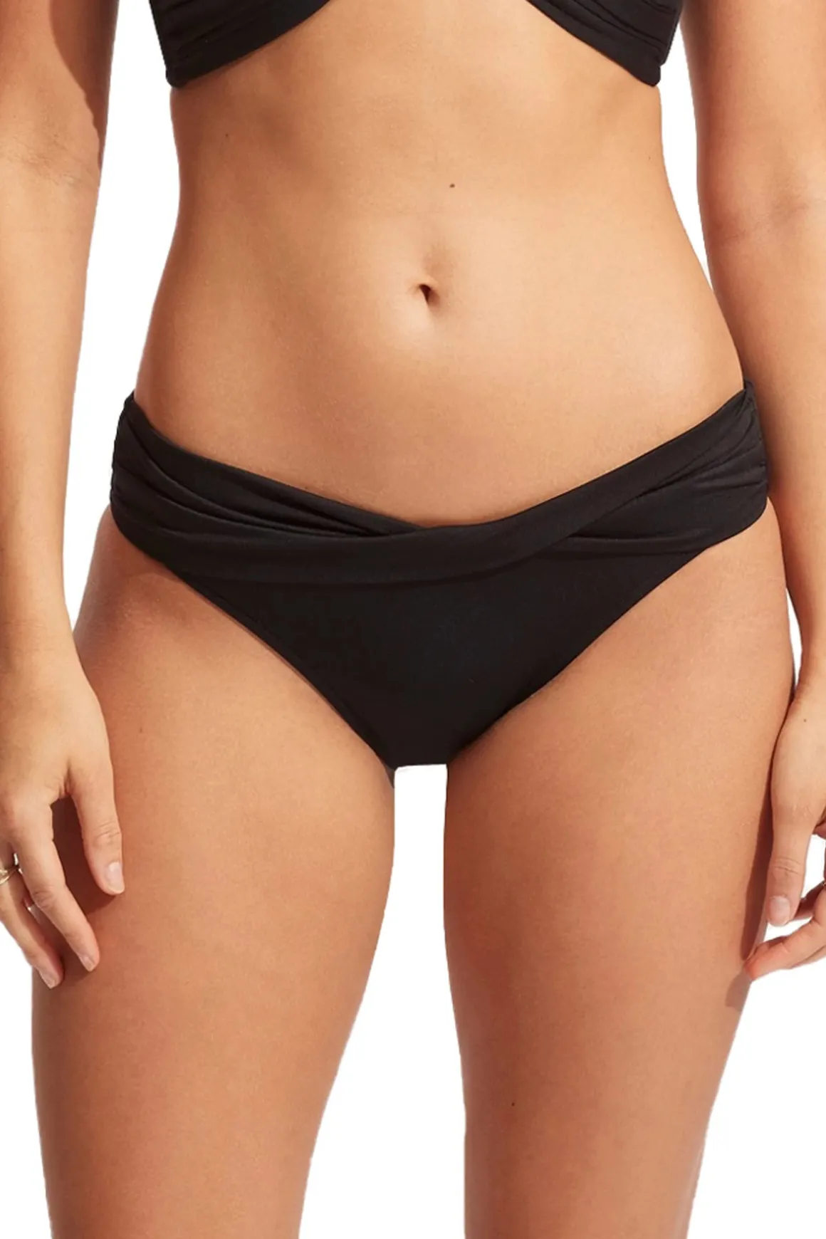 Hipster bikini bottom features a twisted waistband and offers moderate coverage.