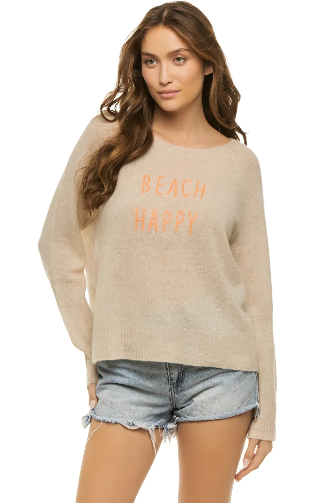 Sweater features a bold “Beach Happy” graphic with long sleeves.