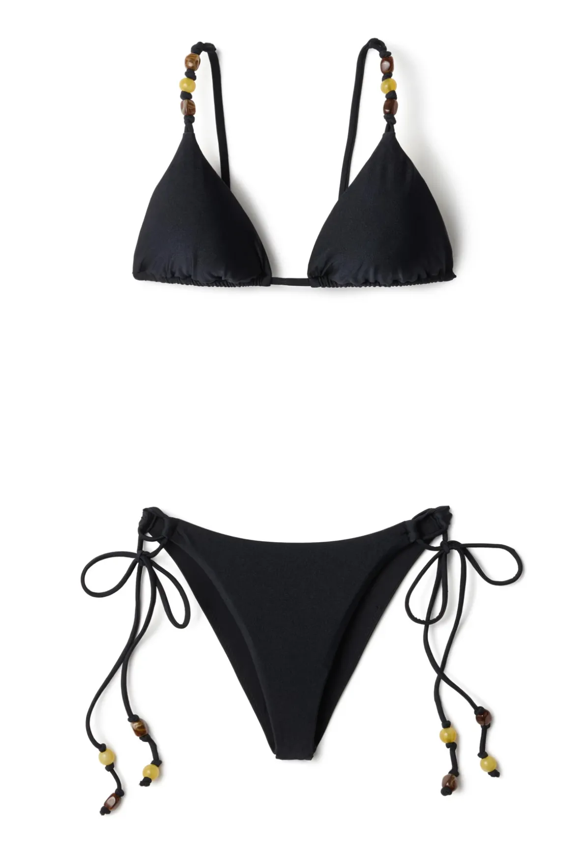Brazilian bikini bottom features shimmer fabric,adjustable beaded ties and offers minimal coverage.