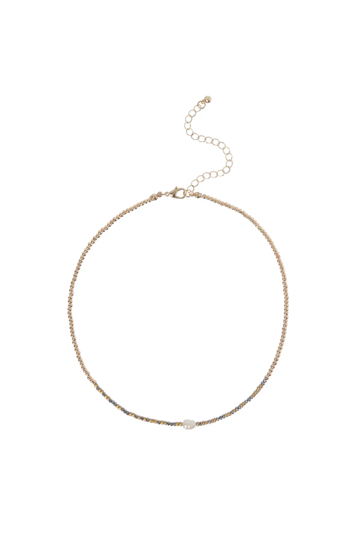 Necklace features glass beading and a freshwater pearl accent.